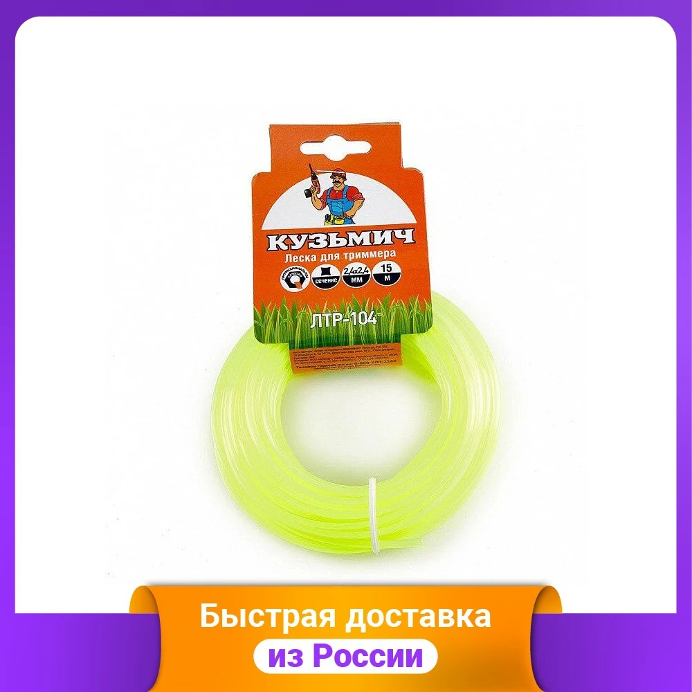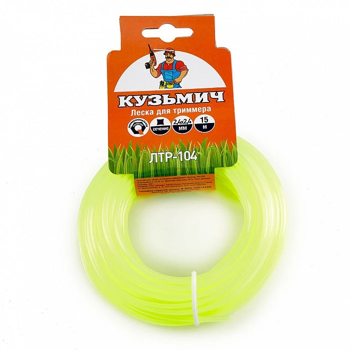 Леска для триммера "Кузьмич" ЛТР-104, 2,4 мм х 15 м (квадрат)