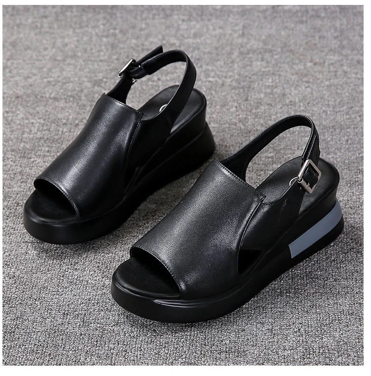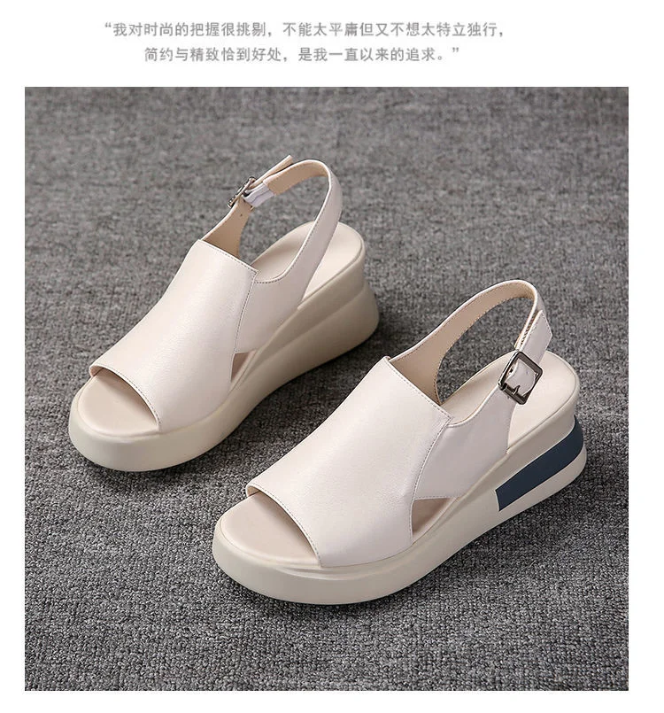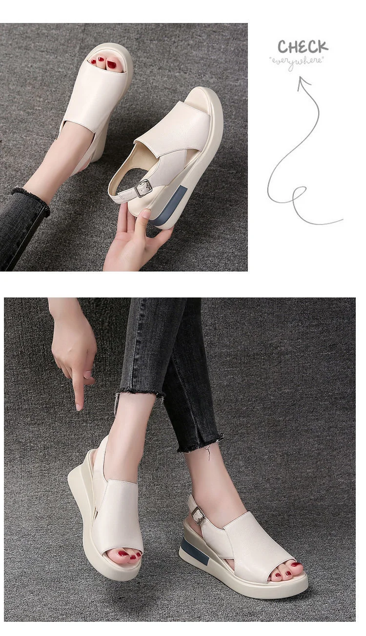 [Возвратная упаковка; Стоимость доставки] босоножки на толстой подошве; Новинка 2021 года; Женские летние туфли из мягкой кожи на высоком каблуке с открытым носком; Женская обувь из мягкой кожи; Обувь на рифленой подошве