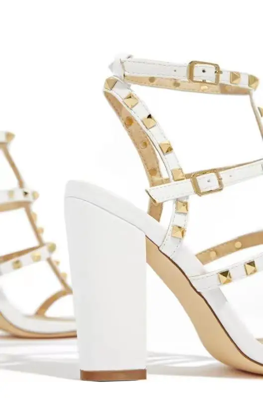 Сандалии с заклепками; Женские сандалии; Коллекция 2020 года; Сезон лето; Роскошный фирменный дизайн; Модная обувь на высоком каблуке; Пикантные кожаные сандалии-гладиаторы с открытым носком Пожалуйста, выберите размер в соответствии с длиной Вашей стопы.