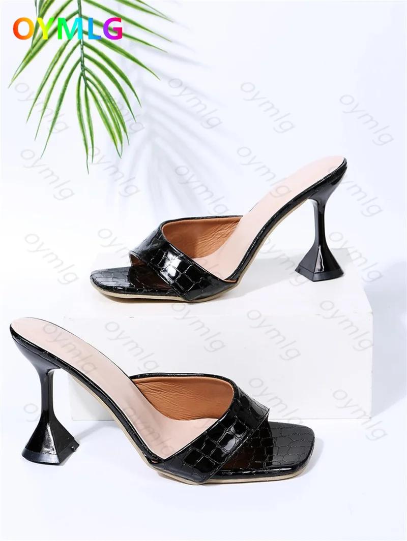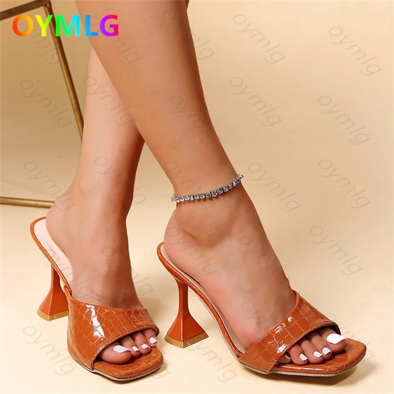 Летние женские сандалии с квадратным носком; Женские туфли без задника на каблуке; Пикантные босоножки на высоком тонком каблуке; Шлепанцы; Женская модная обувь; 2020