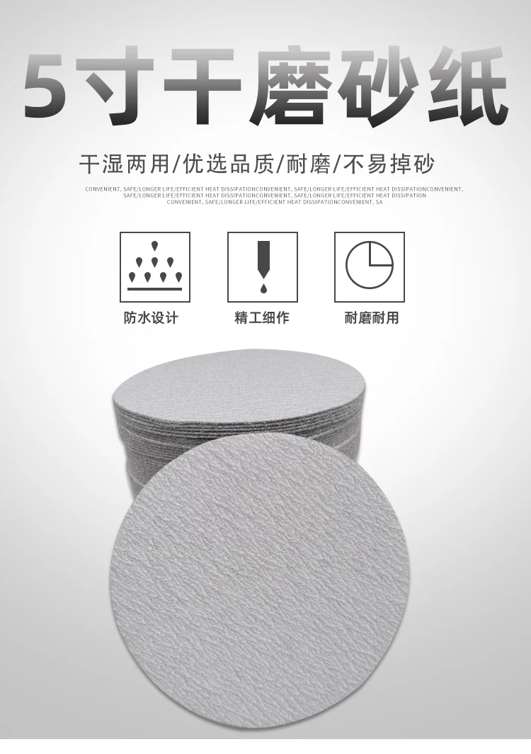 Белая 5-дюймовая Флокированная наждачная бумага, автоматическая покраска, самоклеящаяся пневматическая шлифовальная машина, сухая шлифовка, круглая наждачная бумага