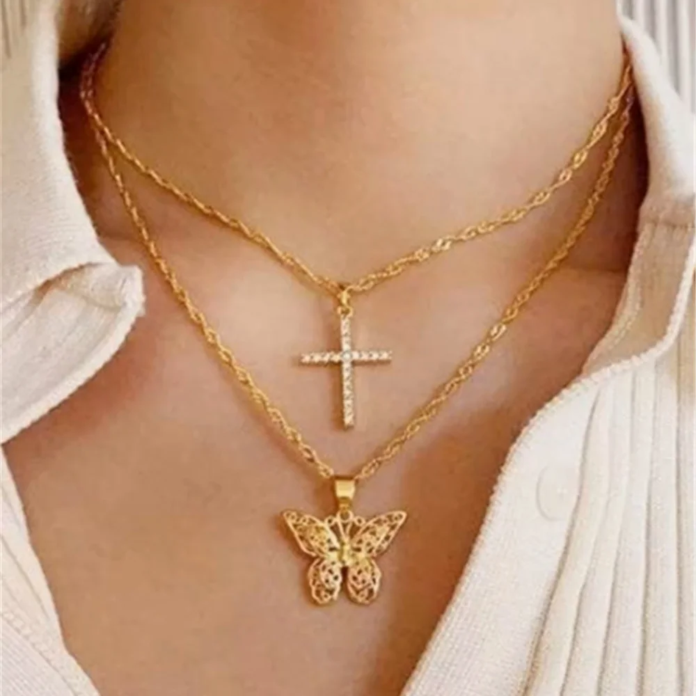 Женское ожерелье с подвеской в виде бабочки и Креста