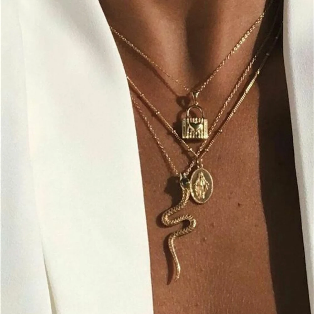 Ожерелье-чокер женское многослойное, модное винтажное ожерелье с по...