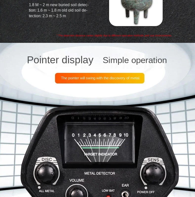 Режимы работы: все металлические и дисковыеЦелевые Показания: виерметрАудио-1,2 "динамик или разъем для наушниковЧувствительность: Максимальная глубина> 16 см для СШАЧетверть в металлическом режиме170 мм Водонепроницаемая поисковая катушкаИсточник питания: две батареи 9 вТребуется