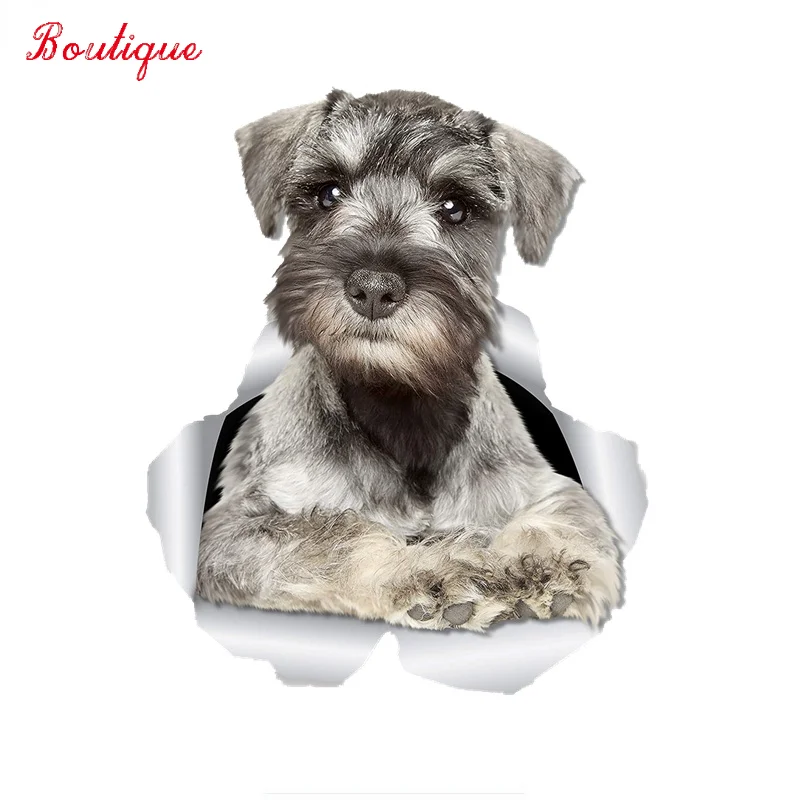 Наклейки 3D для автомобиля с изображением любопытного шнауцера, стены, туалета, детской комнаты, багажа, скейтборда, ноутбука, полиэтиленовые наклейки