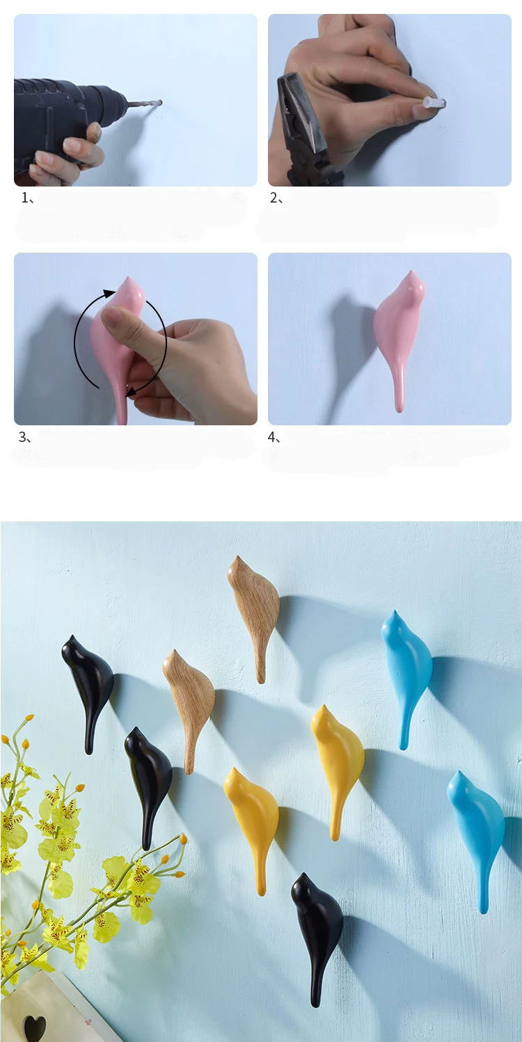 Креативные настенные крючки в форме птицы, украшение для дома, стел...