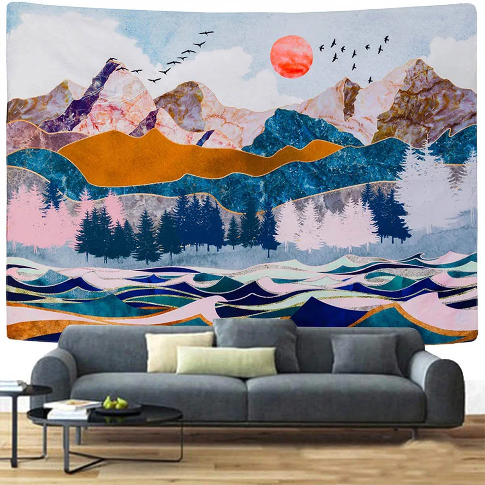 Гобелен SepYue с изображением горы, настенный гобелен, для декора комнаты для дома и общежития, нордический абстрактный пейзаж покрывало в богемном стиле