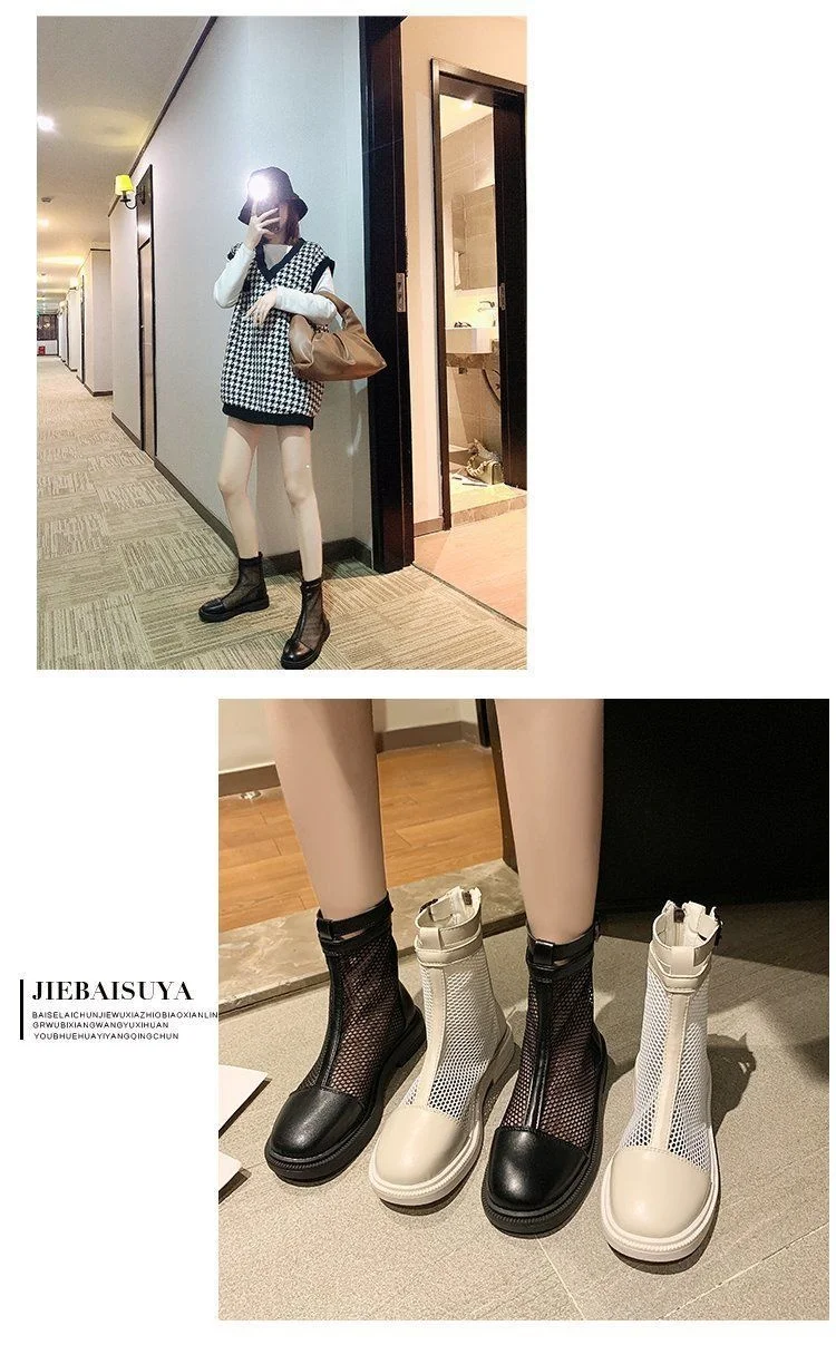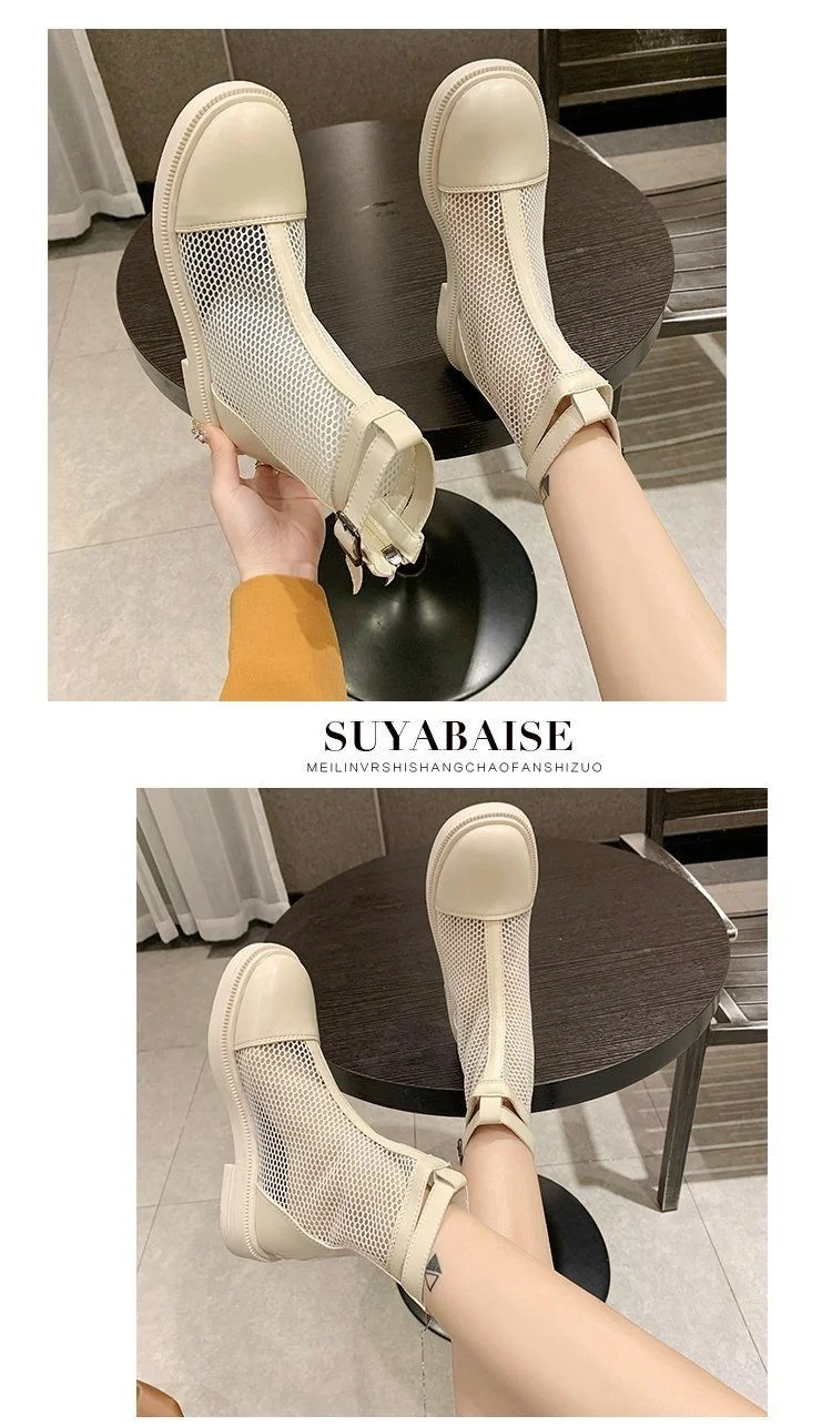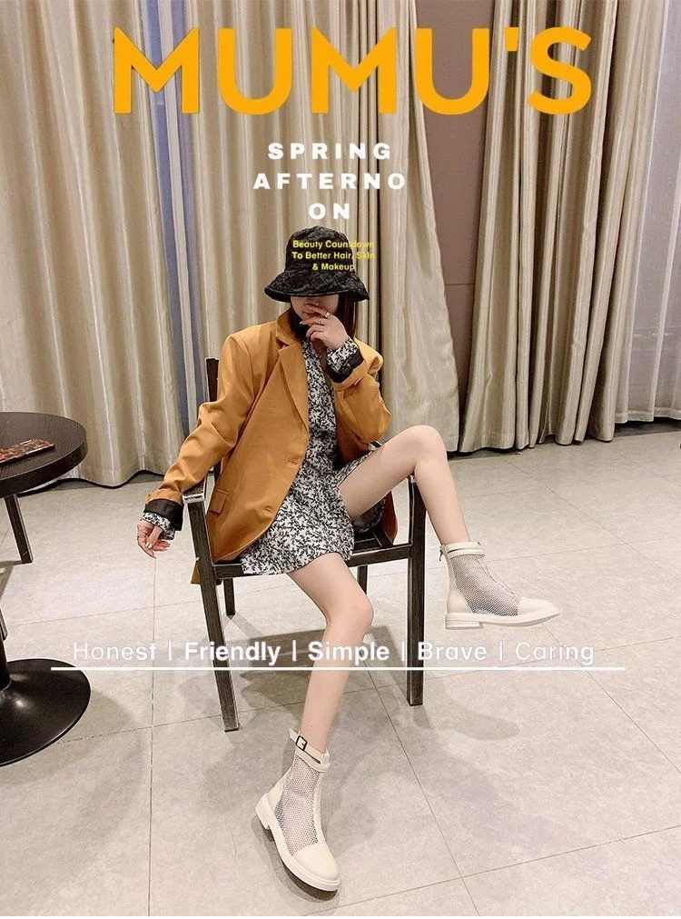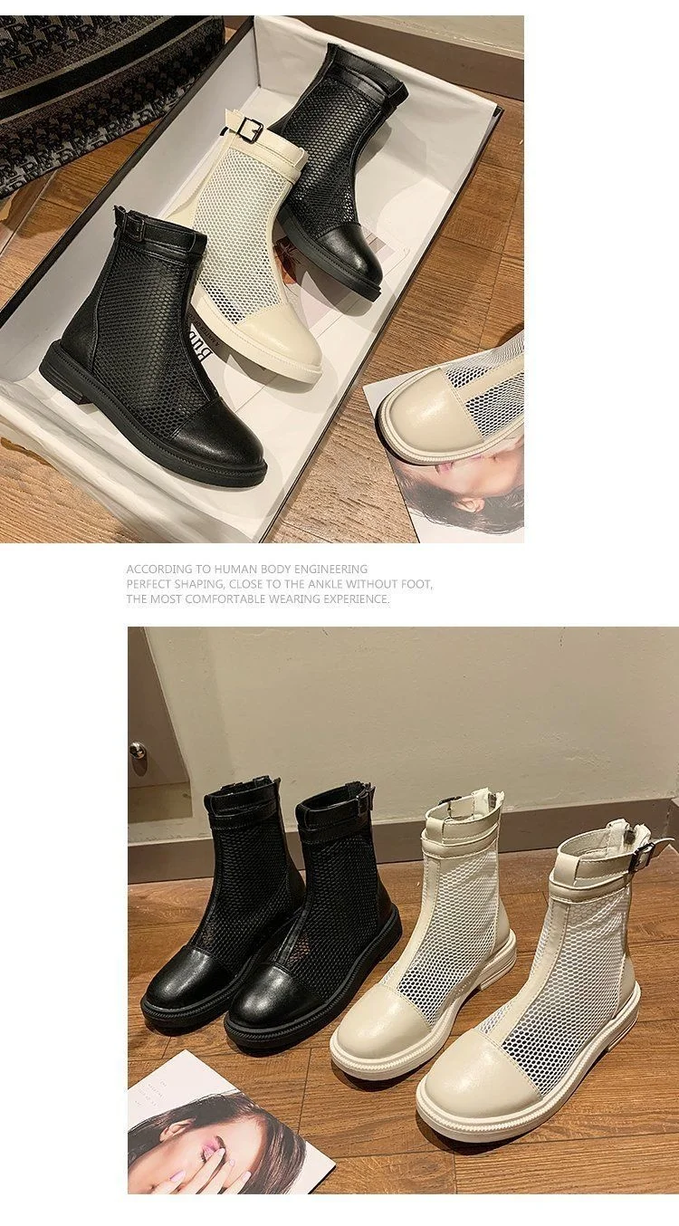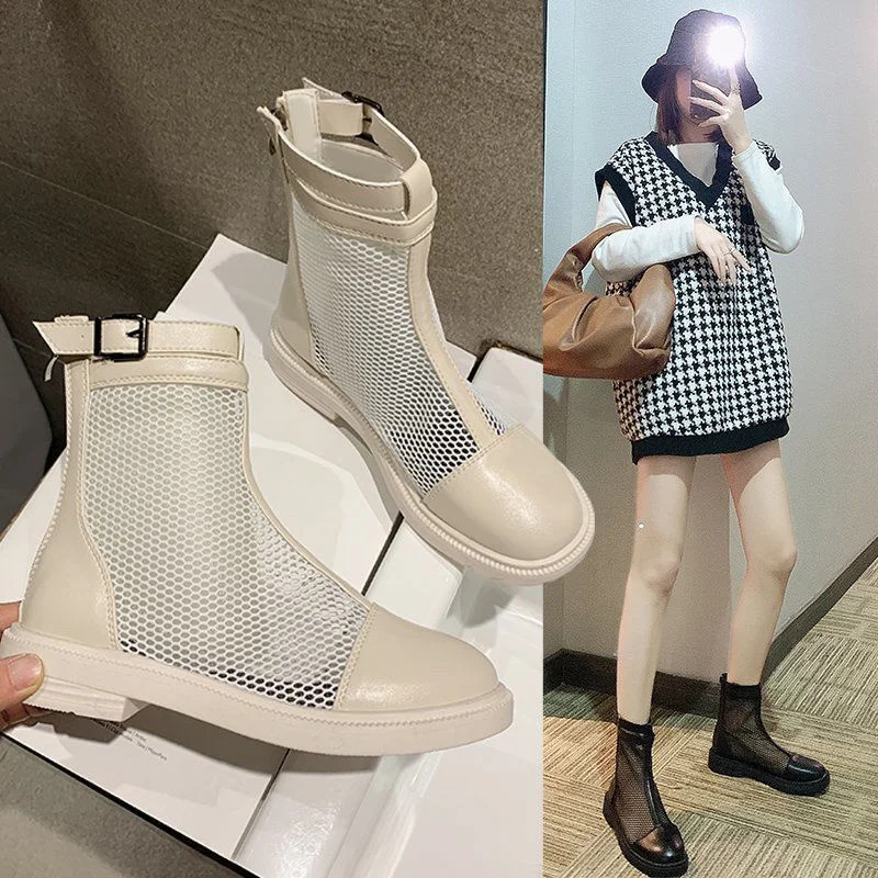 [Возвратная Упаковка Груза] белые Ботинки Martin 2021 г. Новые женские тонкие ботинки на лето, весну и осень сетчатые короткие ботинки на тонком каблуке Универсальные ботинки красного цвета