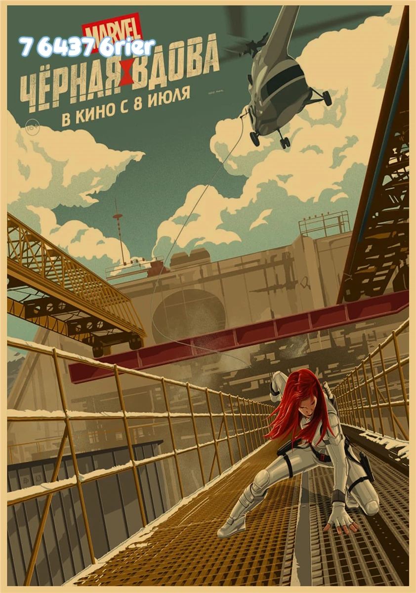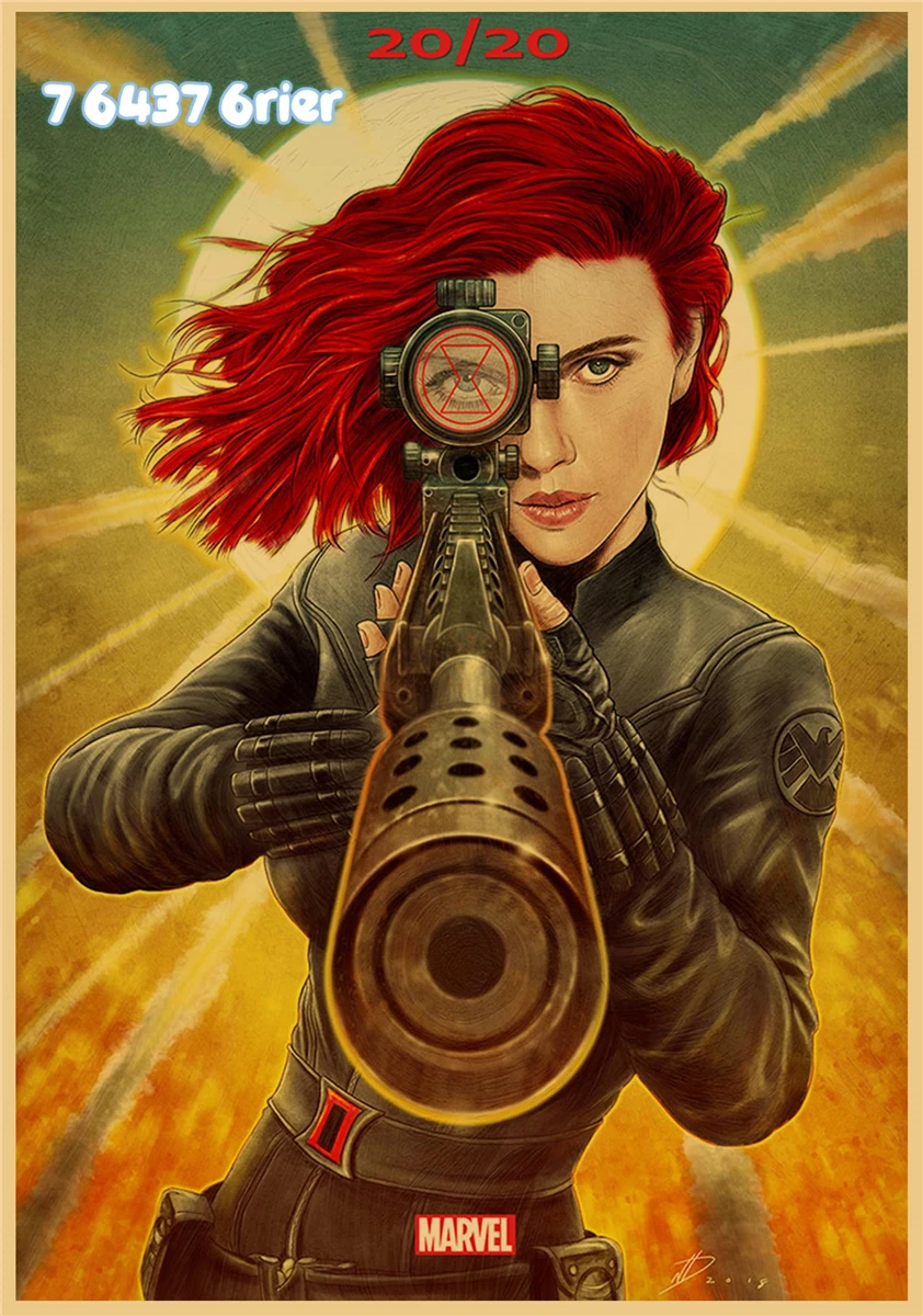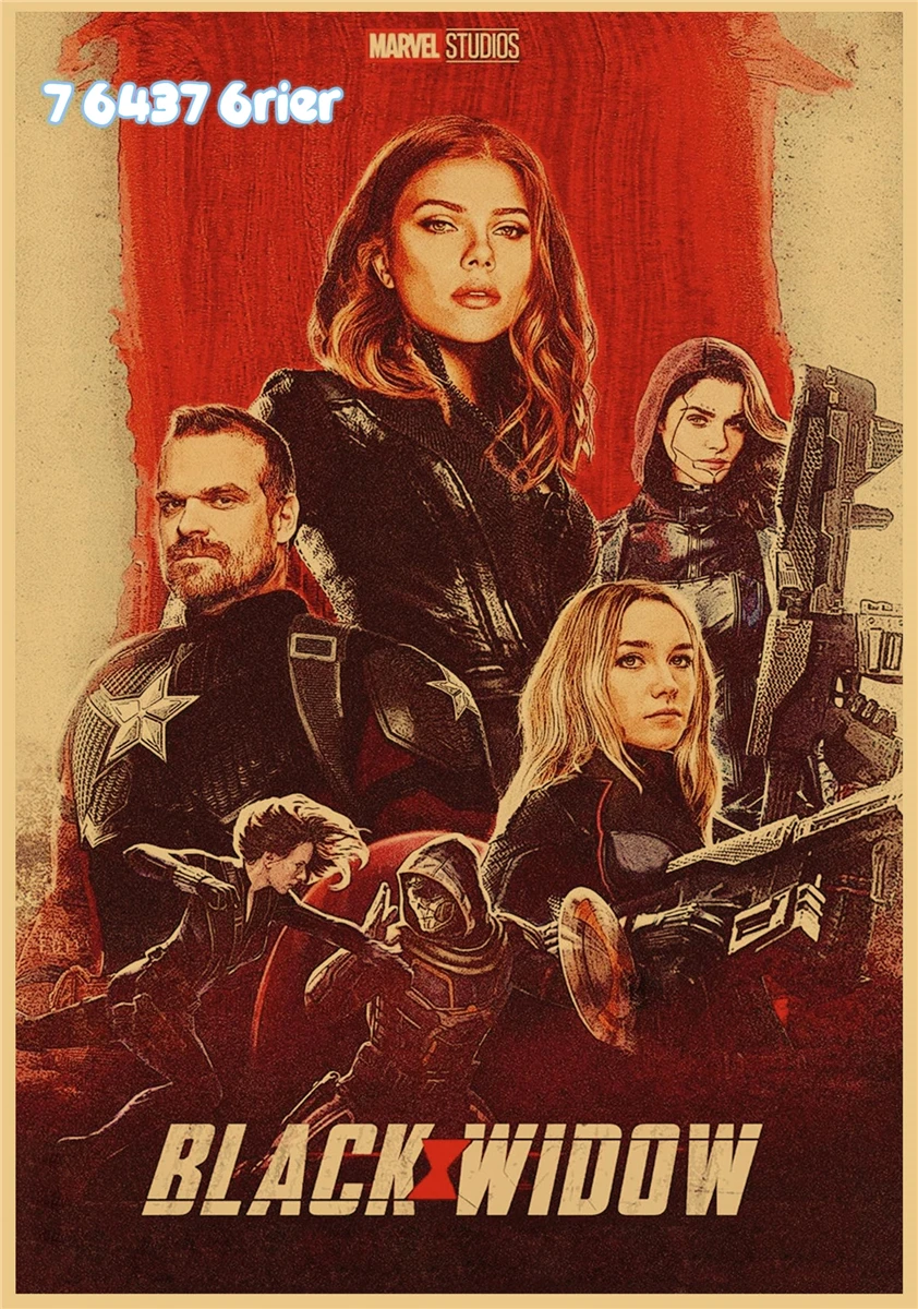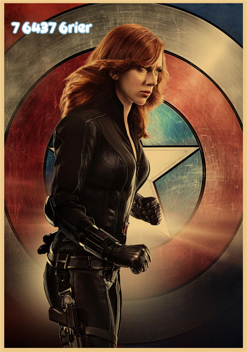 Постер из крафт-бумаги в стиле ретро с изображением супергероев Marvel, Черная Вдова, Мстители, семейная настенная наклейка, украшение для бара, кафе, A238