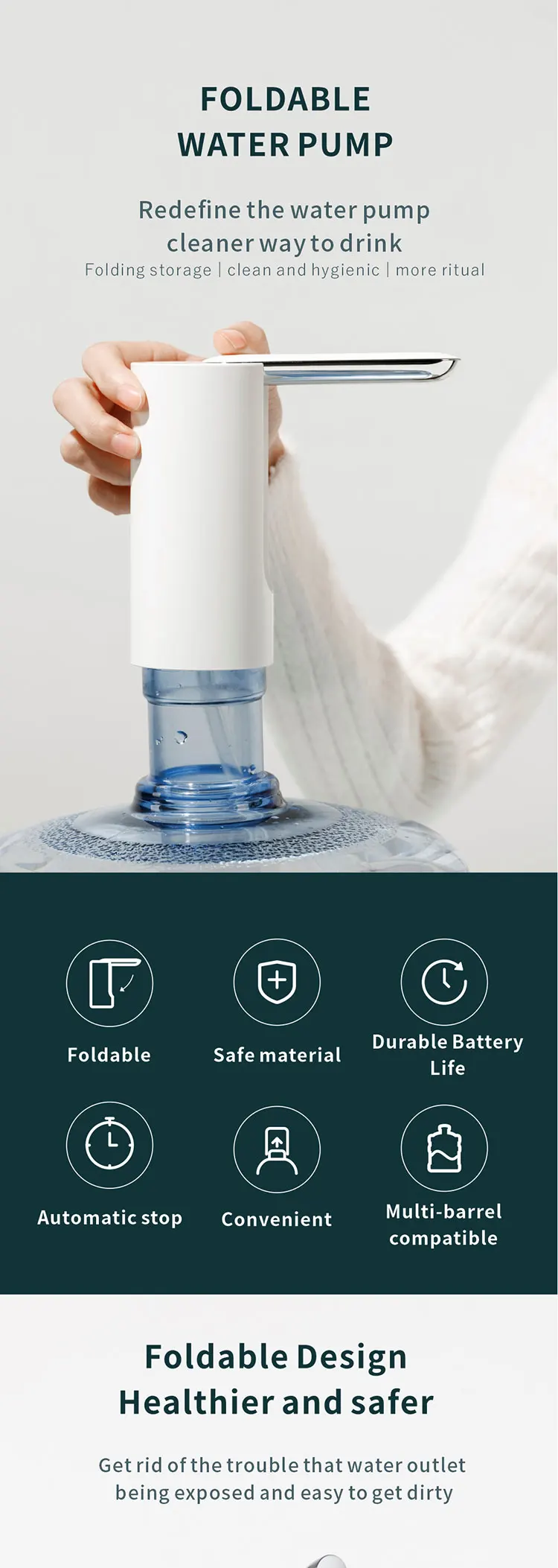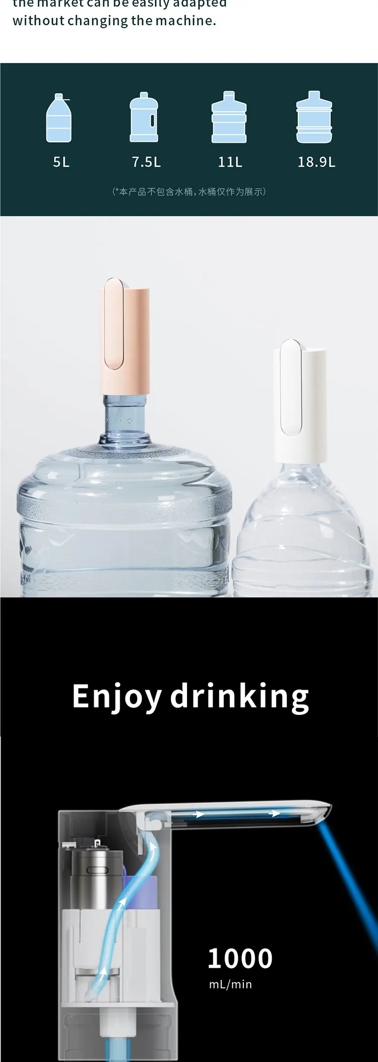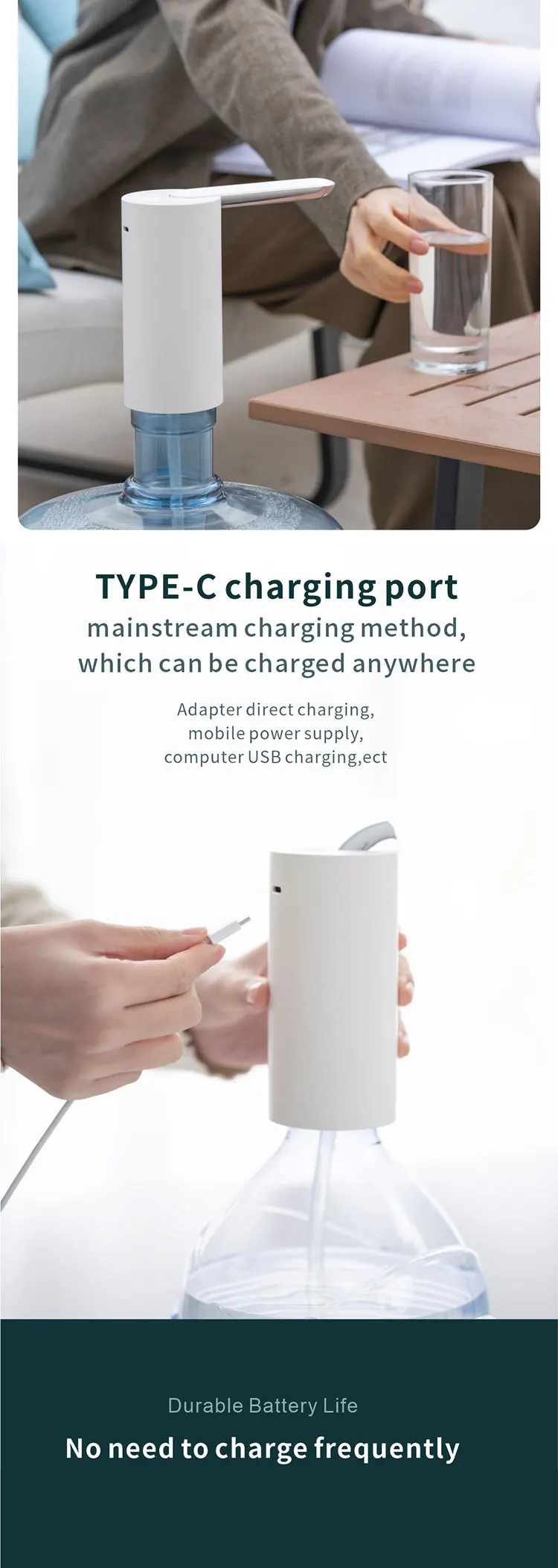 Диспенсер для воды на 5 галлонов, USB-зарядка, автоматический питьевой портативный Электрический диспенсер, помпа для бутылок с водой