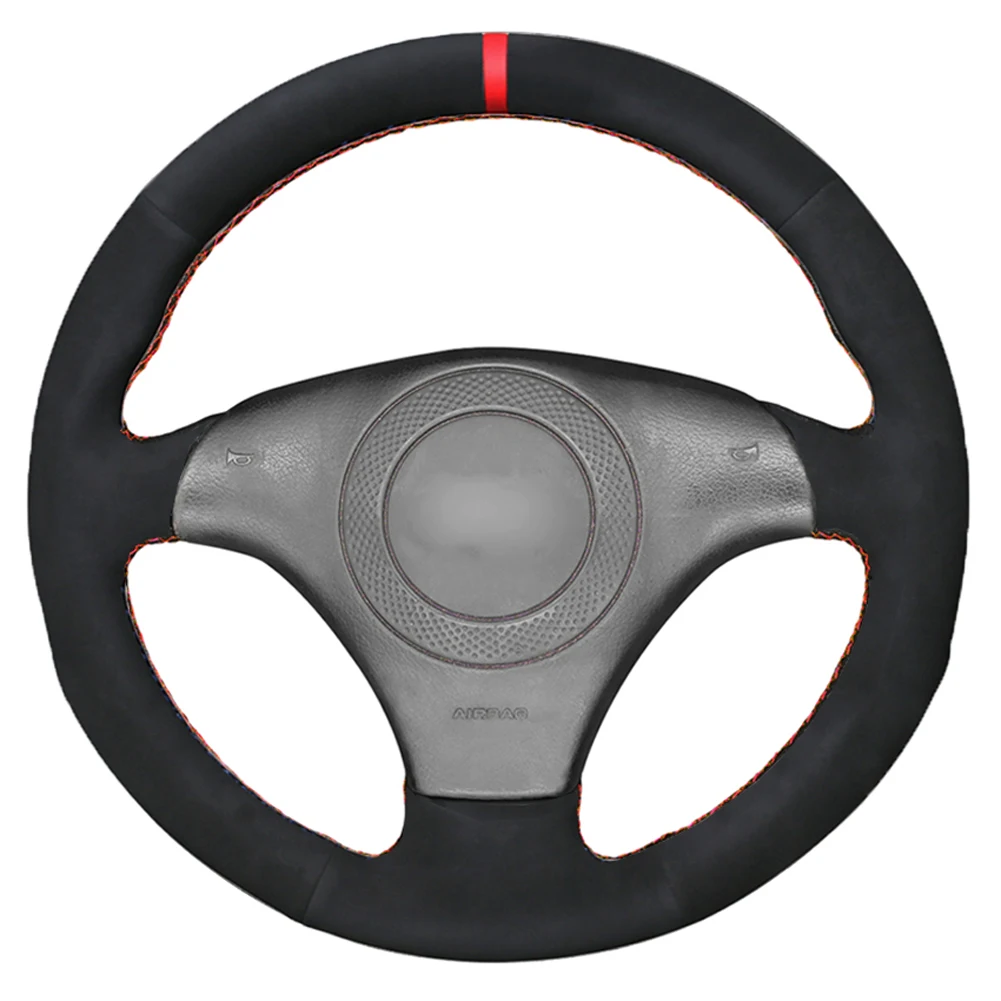 Сшитый вручную черный замшевый красный маркер Чехлы рулевого колеса...