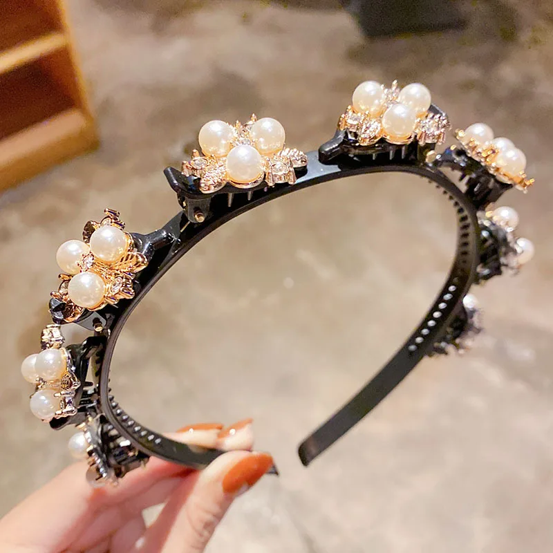 Ободок для волос с жемчугом и двойной челкой для мужчин и женщин
