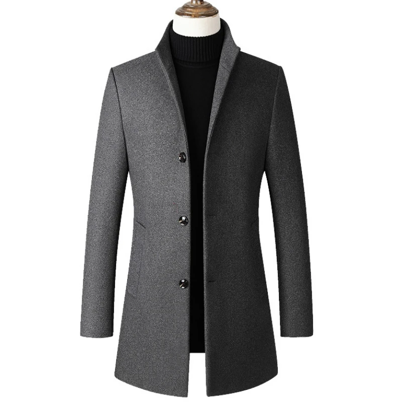 Осенне-зимнее шерстяное пальто мужское длинное пальтоделовой плотный мужской тренчкот Смешанное пальто с воротником-стойкой мужская одежда