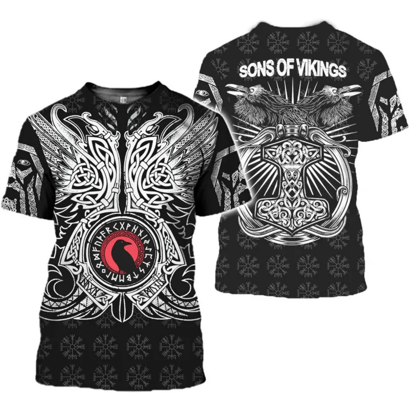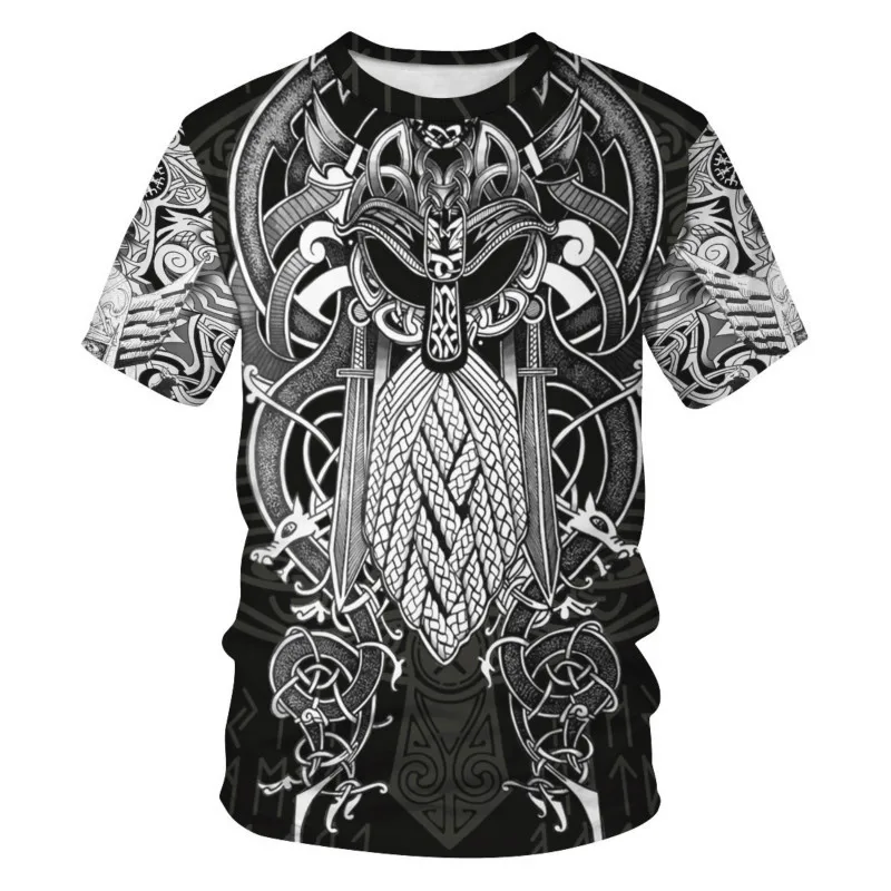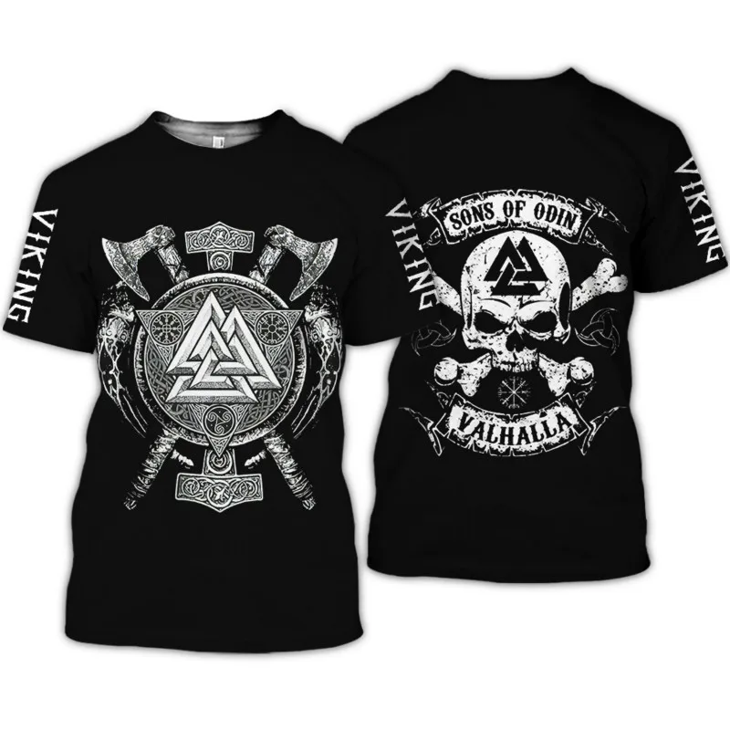 Мужская футболка с круглым вырезом и коротким рукавом, свободная футболка в европейском и американском стиле с цифровым 3D-принтом викингов, Новинка лета 2021