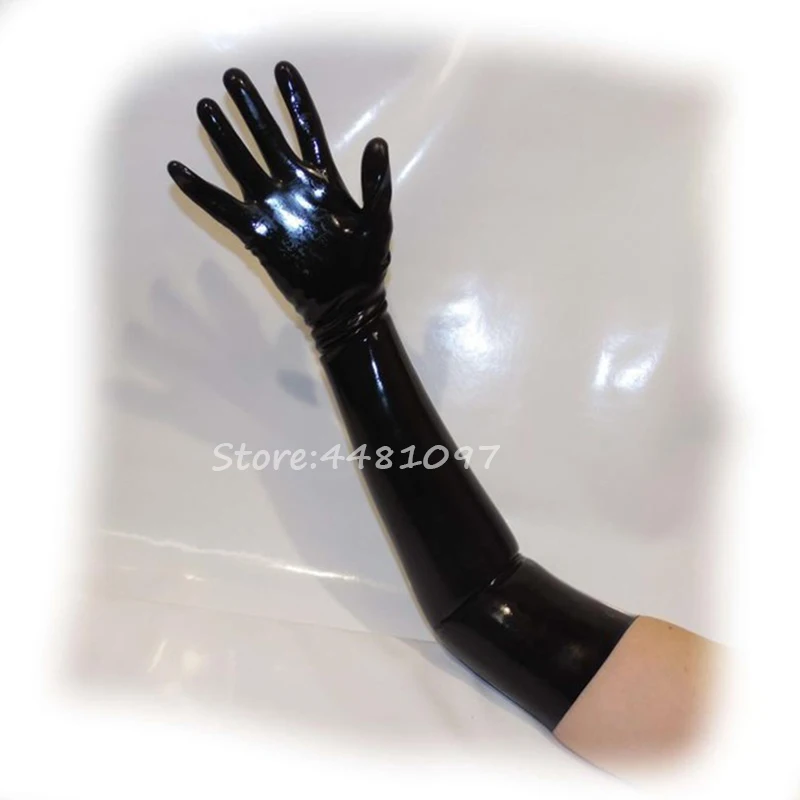 Латексные резиновые перчатки унисекс, Черные Литые бесшовные длинные Фетиш-перчатки на плечо, одежда для кутиша, костюмы для косплея для женщин