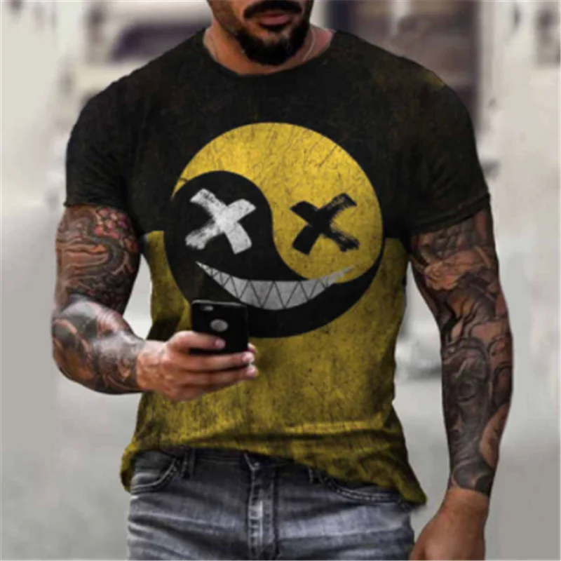 Мужские футболки с цифровым 3D-принтом, летняя повседневная свободная футболка с принтом Смайла, топы с коротким рукавом