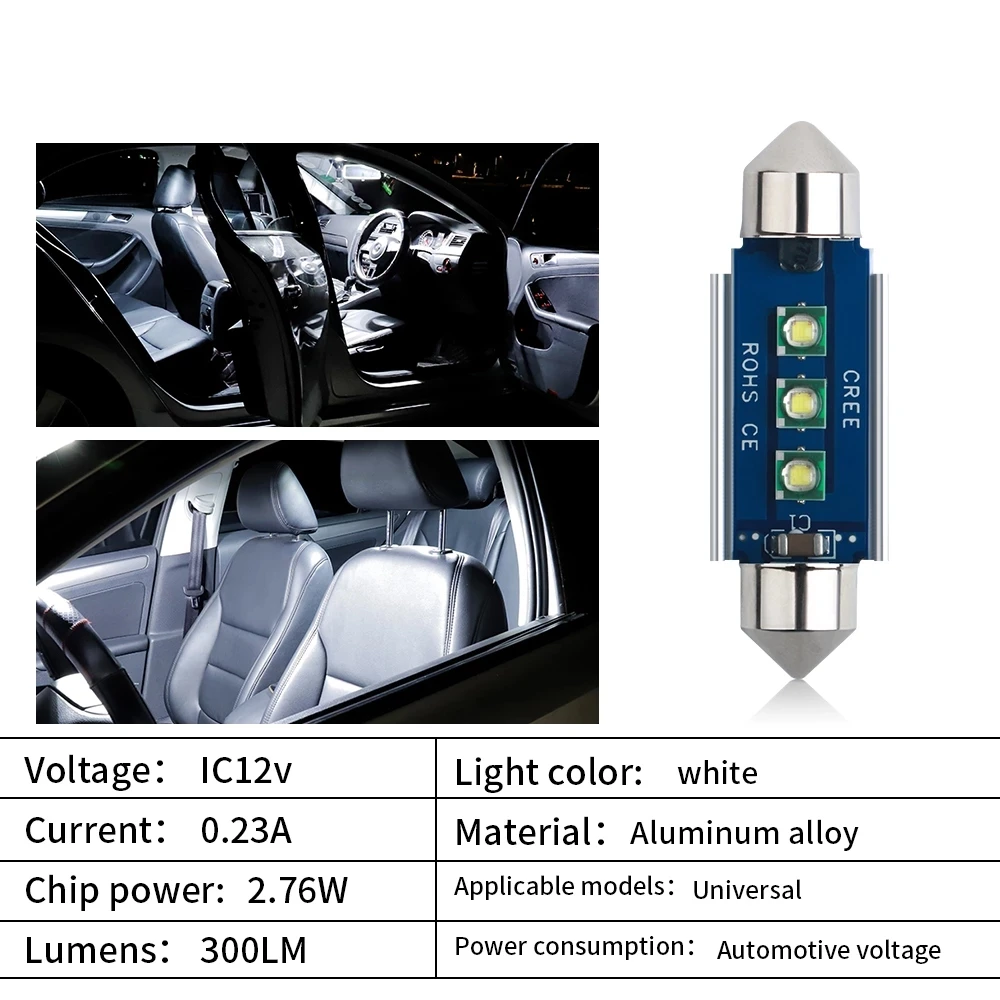Характеристика:100% абсолютно новый, высокое качество, легко установить.Добавьте стиль и украсьте свой автомобиль.Супер яркие светодиоды намного ярче, чем оригинальные лампы накаливания.Легко устанавливается за считанные минутыХарактеристики:Размер: 31/36/39/41 (мм)Ток: 0,23 (A)Напряжение: IC12 (V)Мощность: 2,76 (W)Световой поток: 300 лмДлина: 31-36-39-41ммЦвет: белыйПосылка включает:10 шт. гирлянда светодиодные лампы