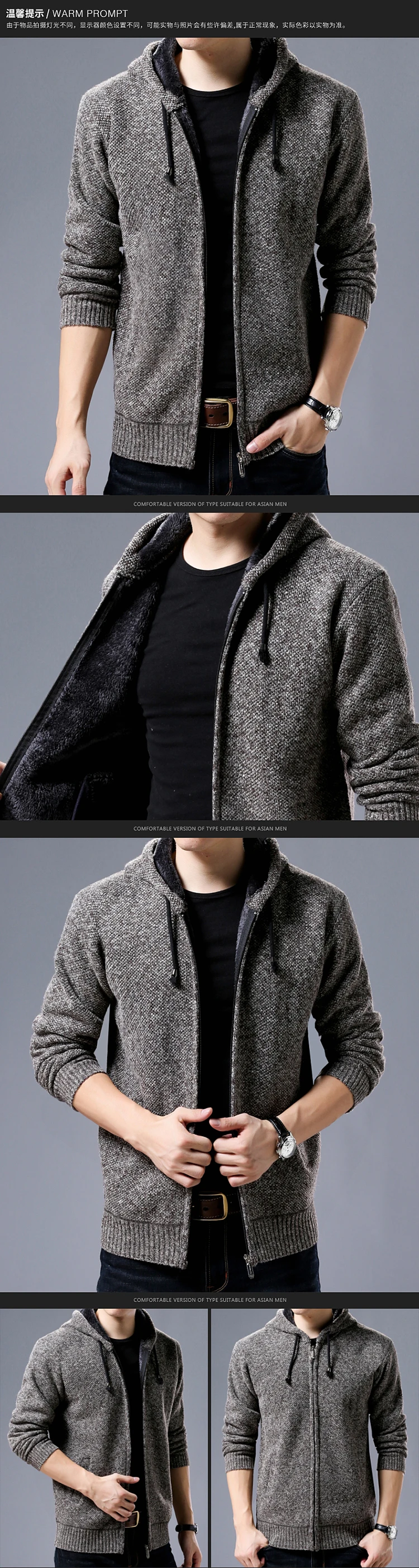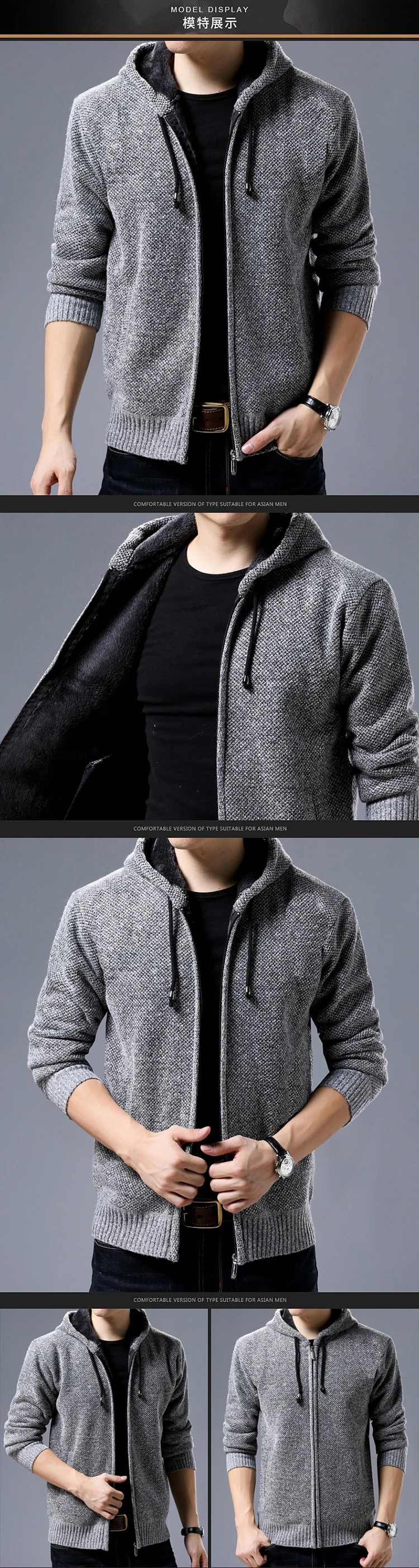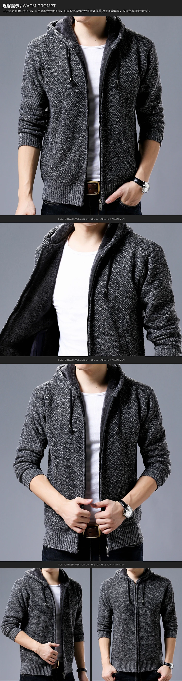Мужской трикотажный кардиган с капюшоном, теплый плотный джемпер пр...