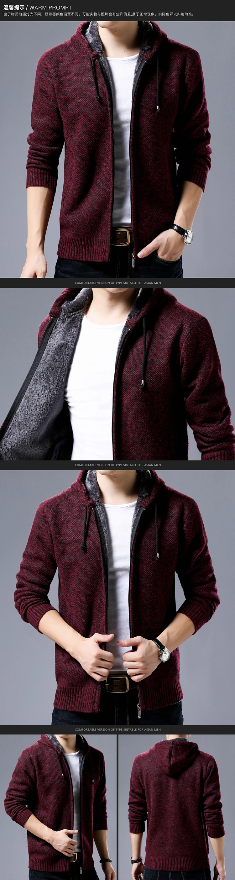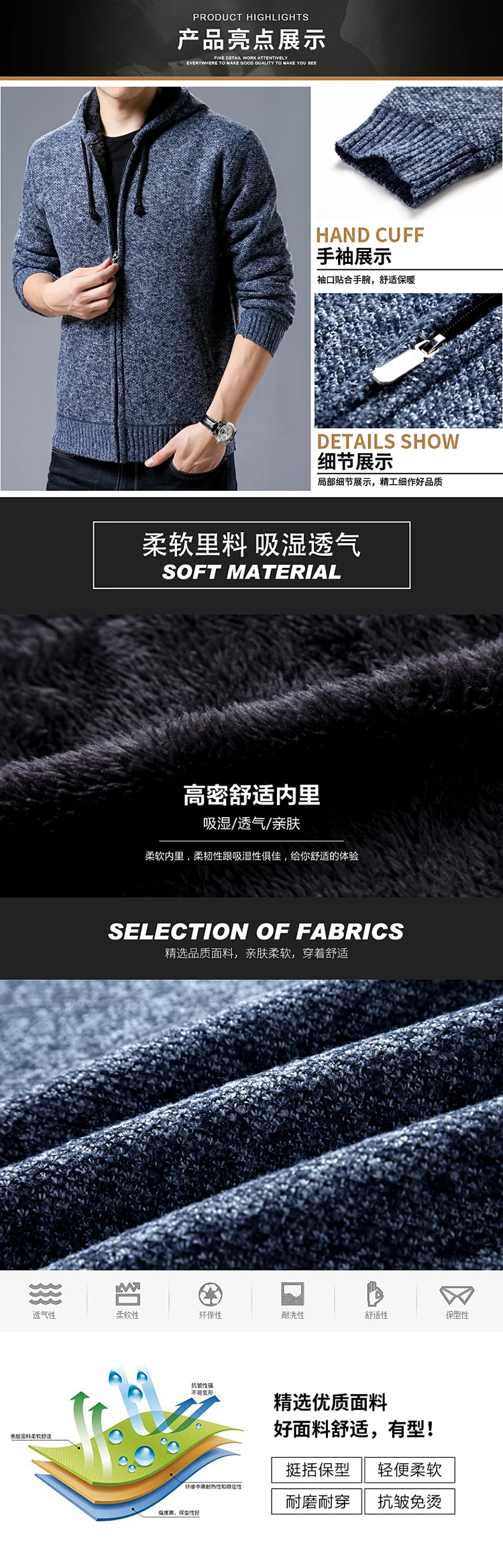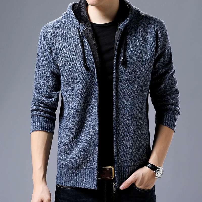 Мужской трикотажный кардиган с капюшоном, теплый плотный джемпер пр...