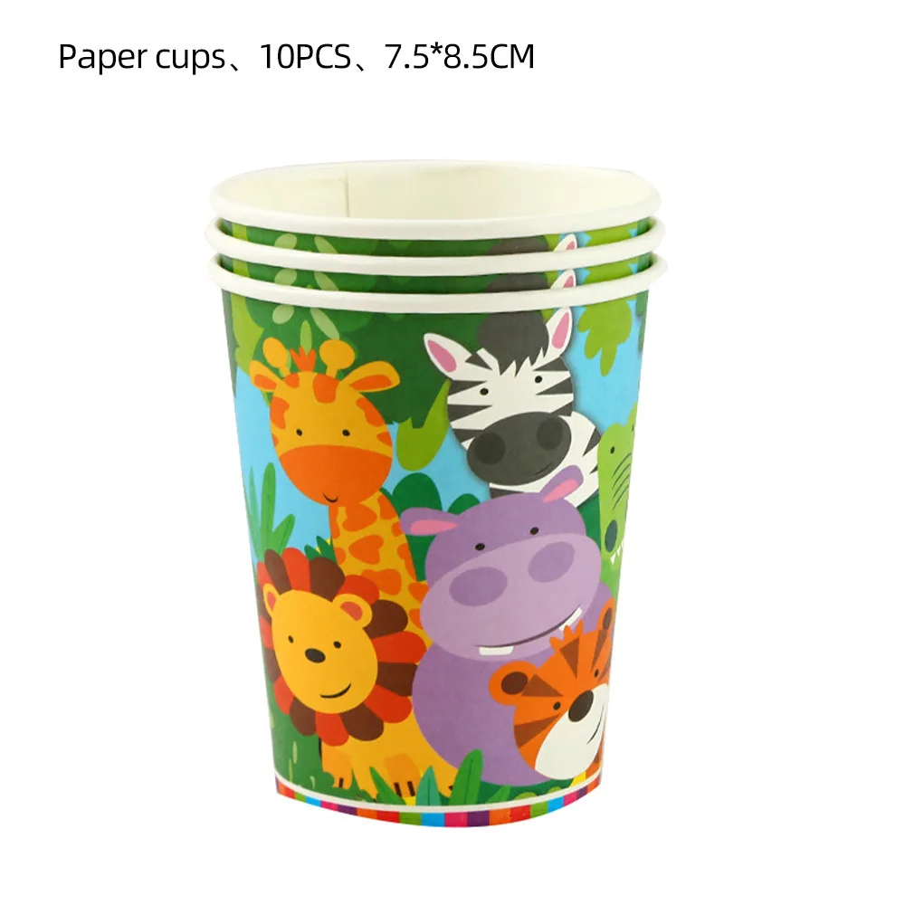 Мультяшные животные джунглей, одноразовые наборы посуды для вечерин...