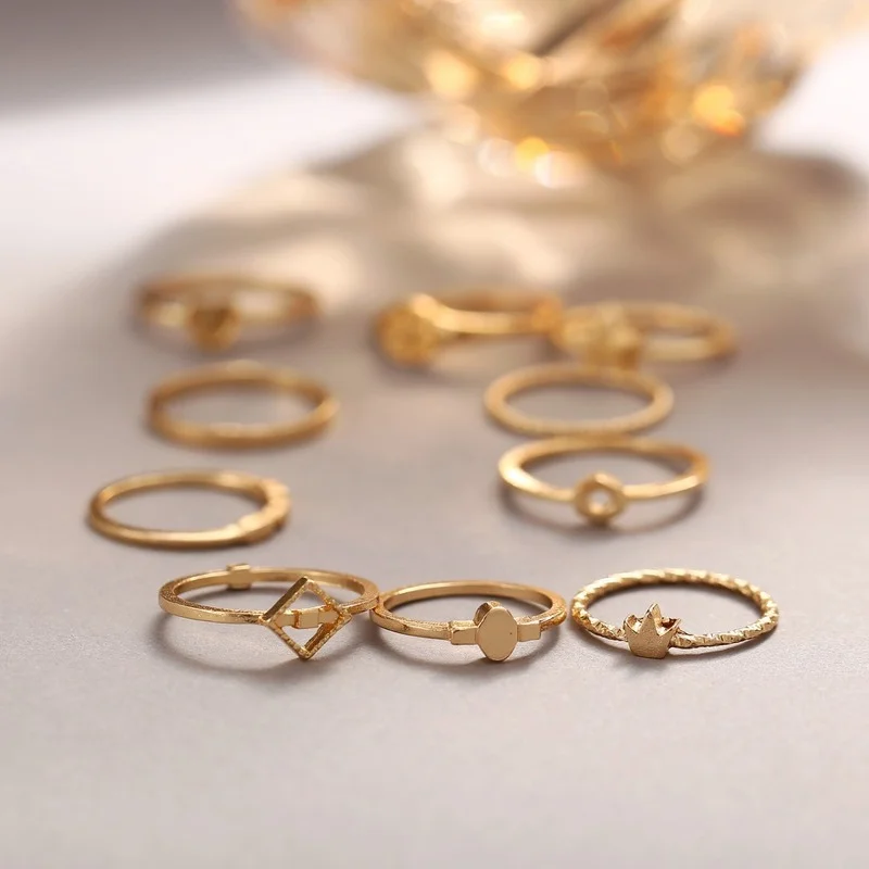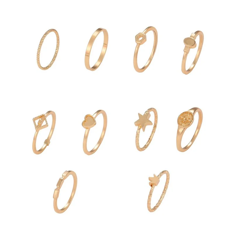 Набор женских колец, с короной и пятиконечной звездой, 2021, 10 шт., корейская мода, кольцо персикового цвета с сердцем золотые украшения для свадьбы, аксессуары в готическом стиле
