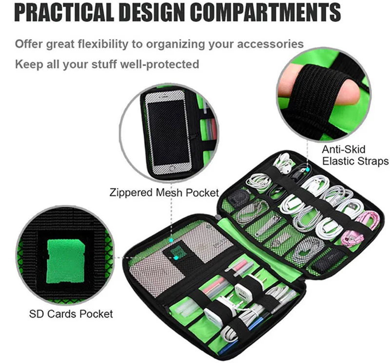 Органайзер для гаджетов и кабелей, дорожная сумка для хранения электронных аксессуаров, чехла для кабелей, USB-зарядного устройства, держатель для внешнего аккумулятора, набор цифровых инструментов