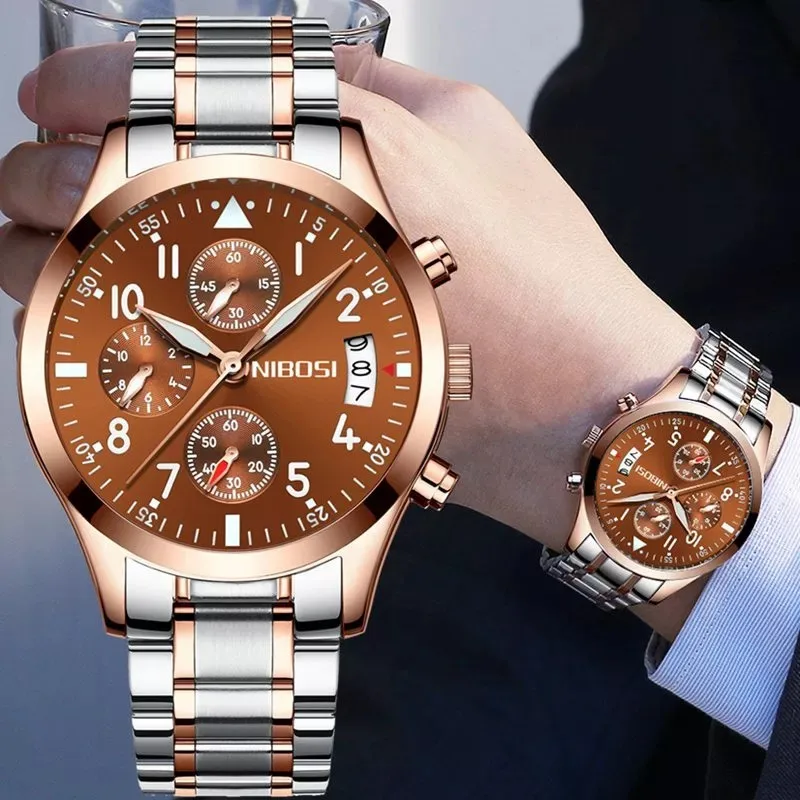 NIBOSI розовое золото, мужские часы, роскошные Лидирующий бренд, му...