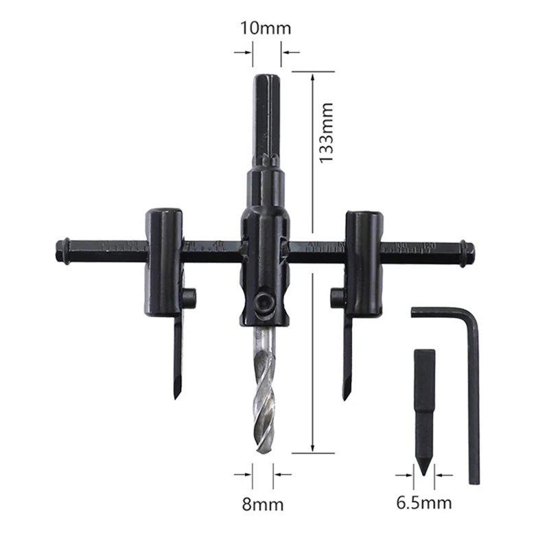 1. Режущая кромка изготовлена из высококачественного цементированного карбида, резко режущая, что делает вращение стабильным.2. Авиационный Тип Отверстия открыватели используется для сверления отверстий на пластике, дереве, гипсе Доска, фанера и другие материалы. Они часто используются для динамиков, Точечные светильники, деревообработка, сверление пластиковых досок и т. д., и используются с Настольные сверла, сверлильные прессы и различные ручные сверла.3. Регулируемый Резец круглых отверстий: регулируемый резец круглых отверстий можно легко разрезать Идеальный круг, обеспечивающий быструю, удобную и стабильную резку Эффект.4. Быстрый и точный режущий станок: набор зубцов для отверстий Масштабируется в метрических размерах, просто выберите требуемую шкалу и выровняйте Внутренний край держателя резака со шкалой размеров. Балки из легированной стали Имеют маркированные градации для быстрого измерения и точной резки.5. Инструмент Использование бит: широко используется в отверстиях для деревообработки, прожекторах, Отверстия для пластиковых пластин, отверстия для динамиков и т. д. идеально подходит для сверления Деревообработка, ламинат, пластик, акрил, фанера, композит, штукатурка, Резина и картон. Примечание: