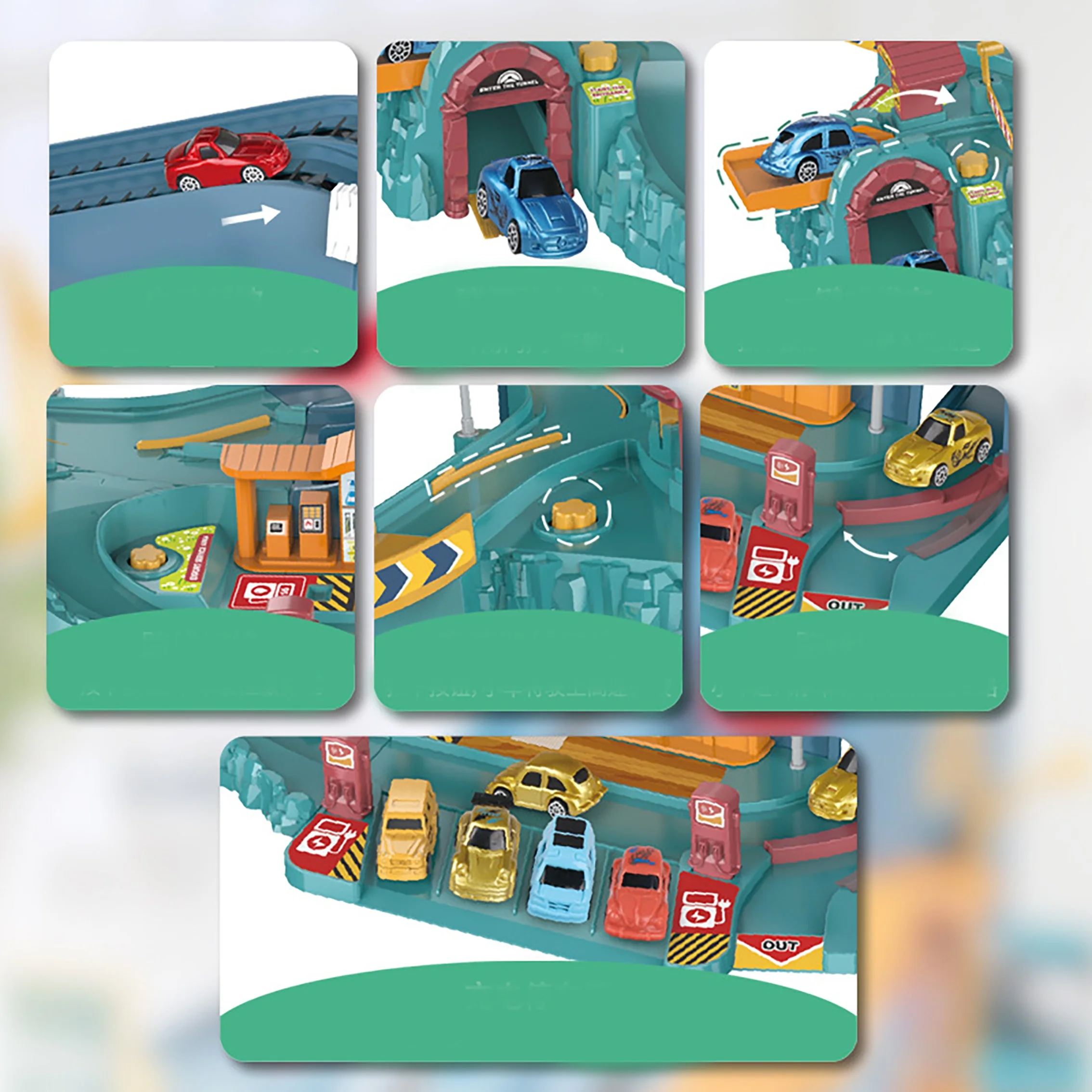 Детское городское шоссе, динозавр, планшетофон, автомобиль, разбивание по большим приключениям, парковка, строительный пазл, игрушка для мальчика