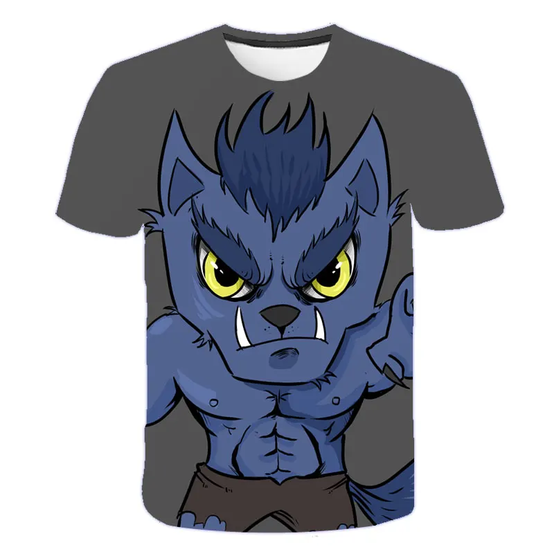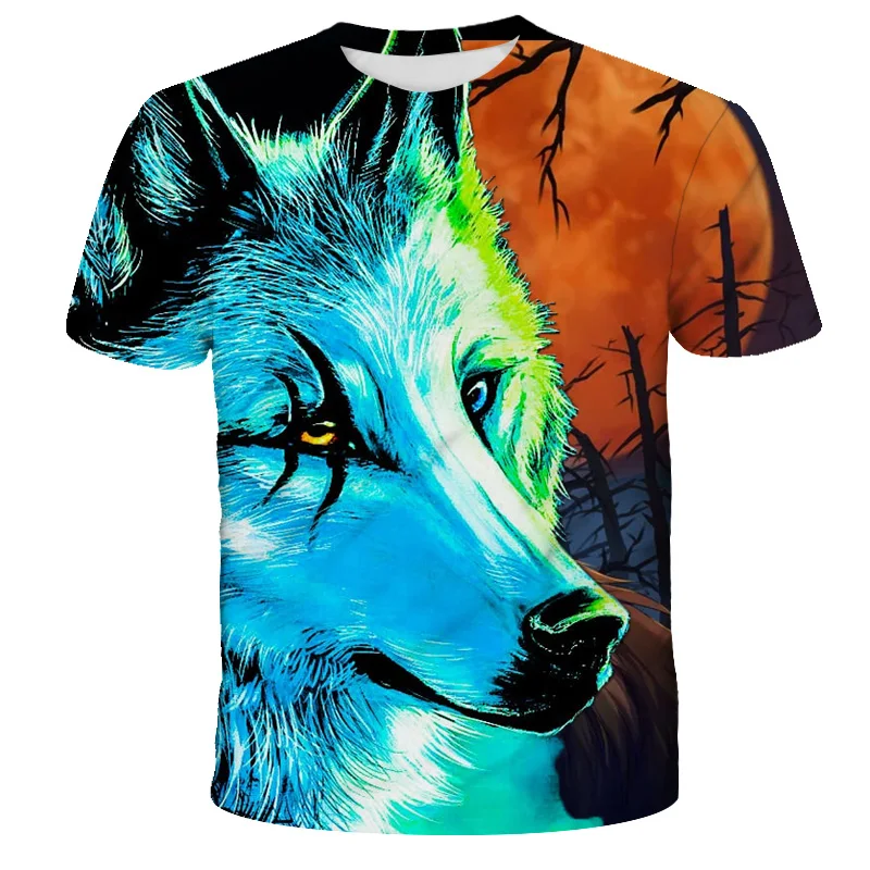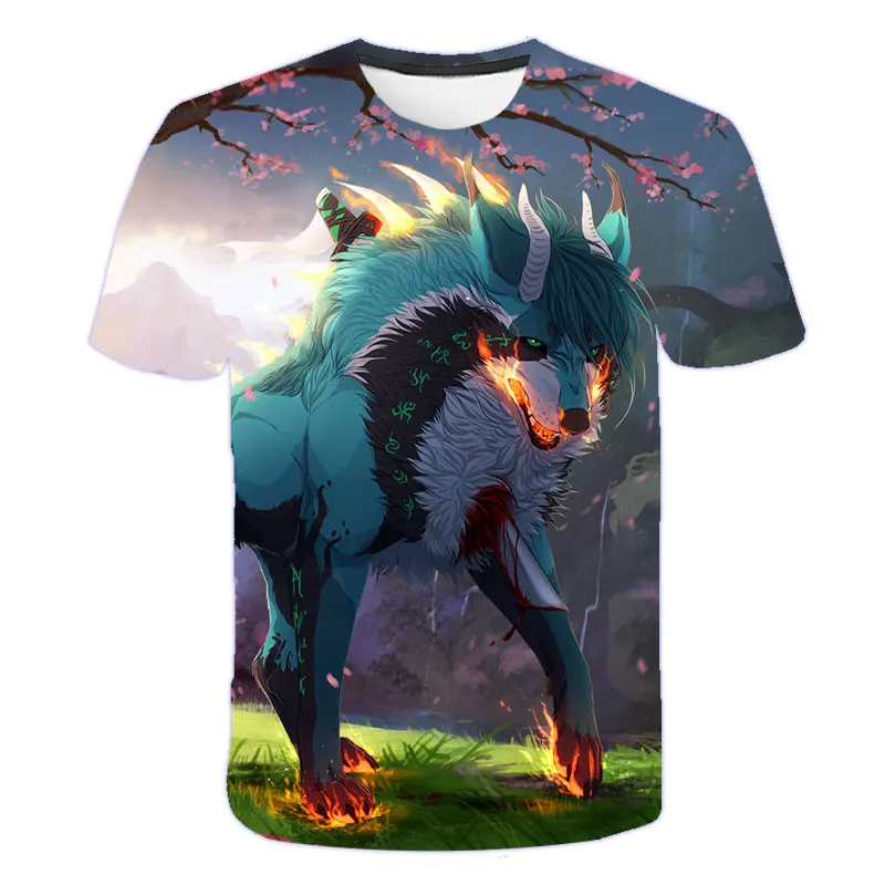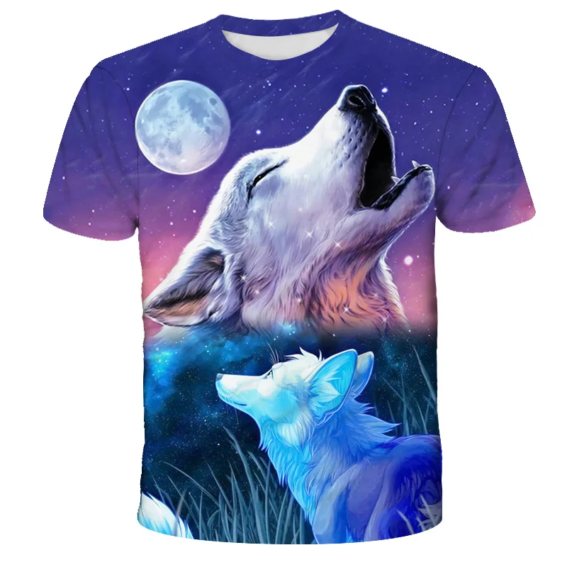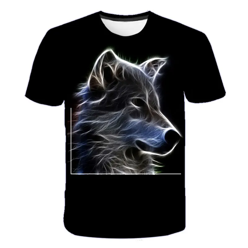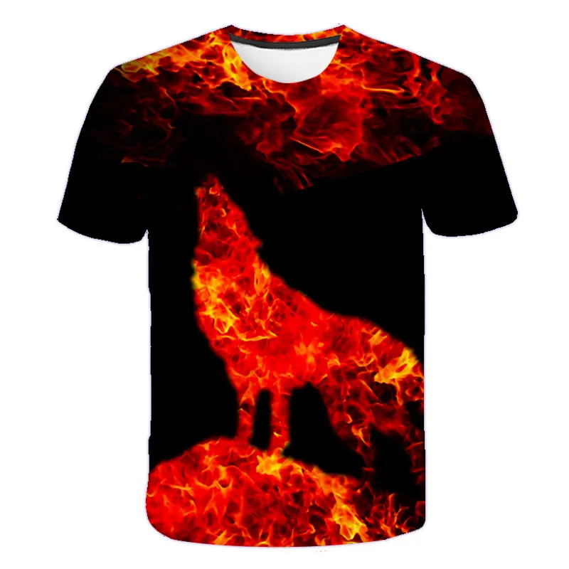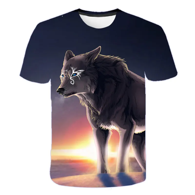 Новинка 2021, летняя одежда для мальчиков и девочек, футболка с волком, детская одежда, дышащая 3D печать, крутая модная мультяшная одежда с коротким рукавом