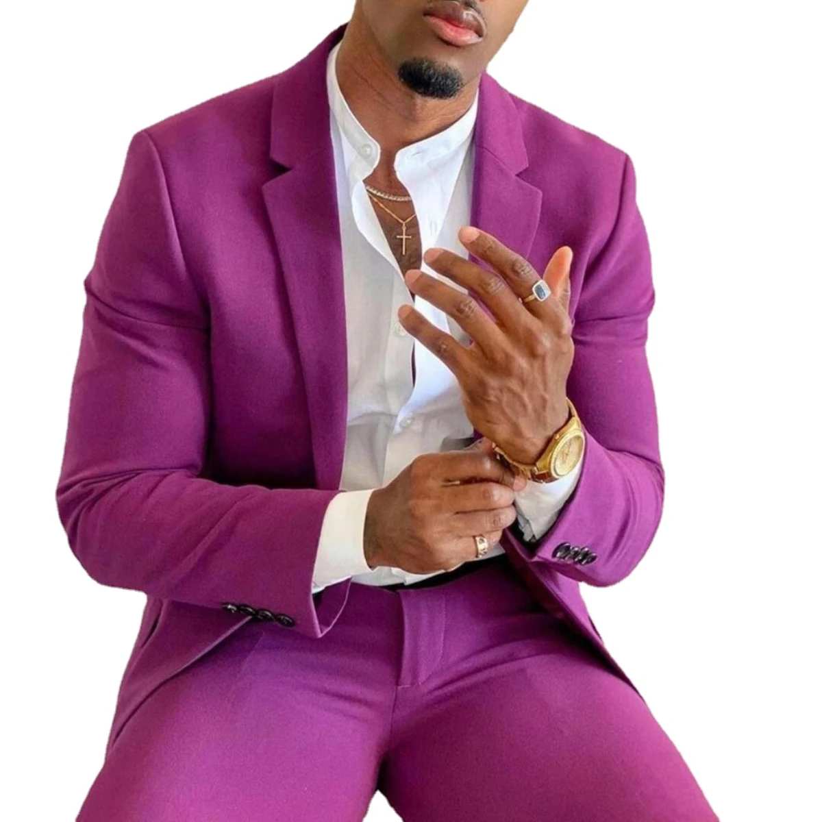 Мужской костюм, 2 шт. (пиджак и брюки), фиолетовый летний мужской блейзер, облегающий блейзер для выпускного вечера