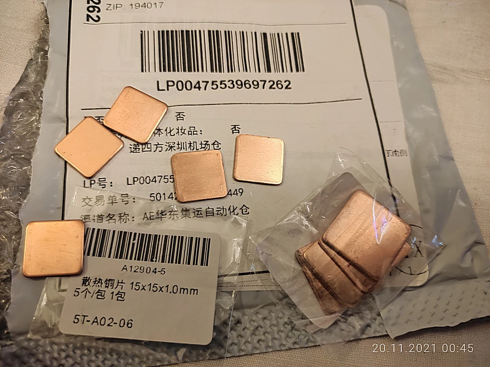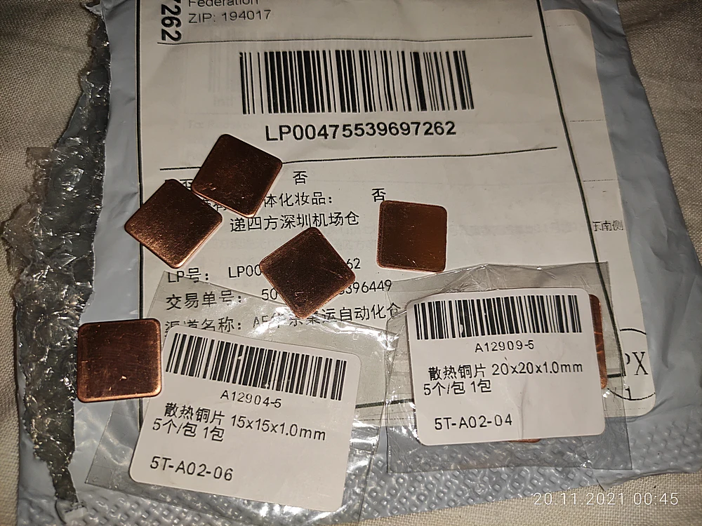 Страна: AT Specification: 20x20x1.5mm Доставка: Standard Shipping 06.12.2021