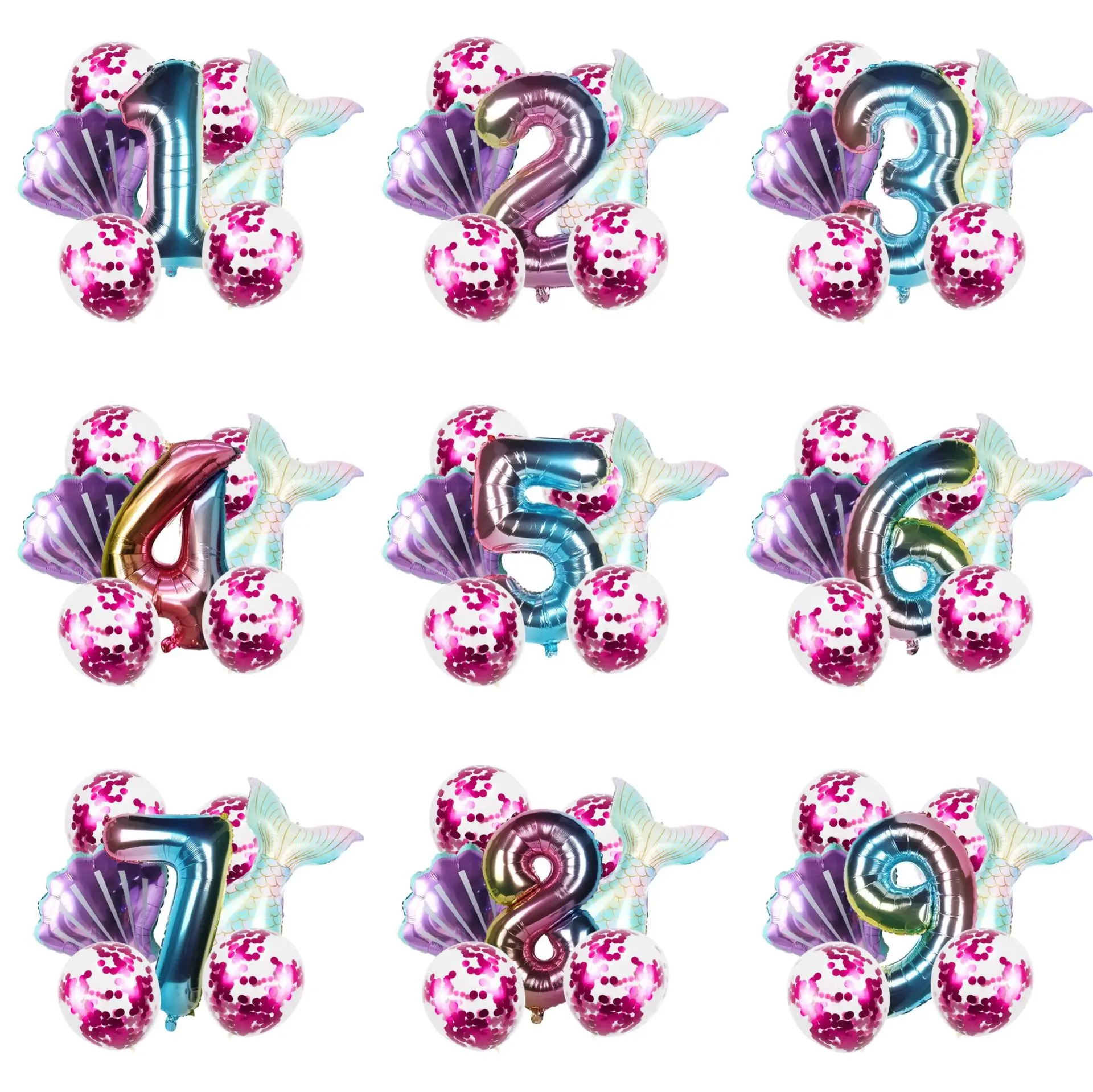 Шарики в виде цифр для дня рождения с хвостом русалки, 13 шт., 1, 2...