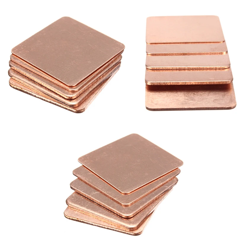 5 шт., медная термопрокладка для радиатора ноутбука, толщина 0,3-2 мм