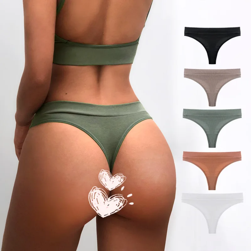Трусики-стринги женские хлопковые, однотонные, бесшовные, с низкой ...