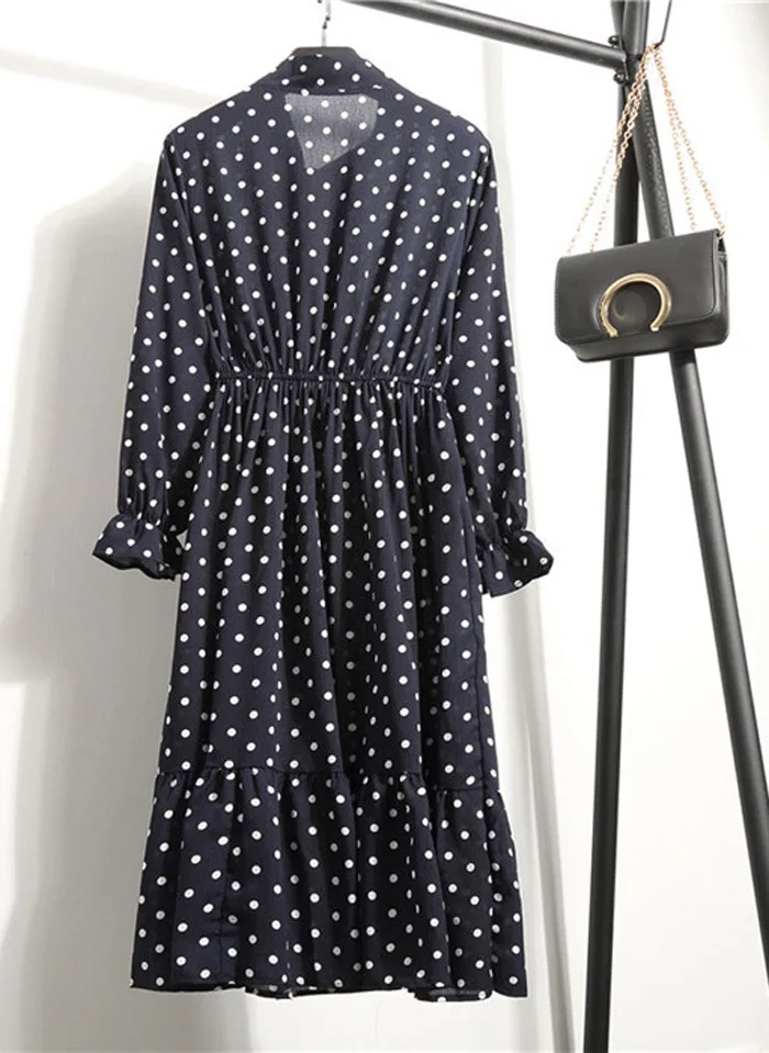 Женское шифоновое платье в горошек, повседневное, с длинным рукавом...