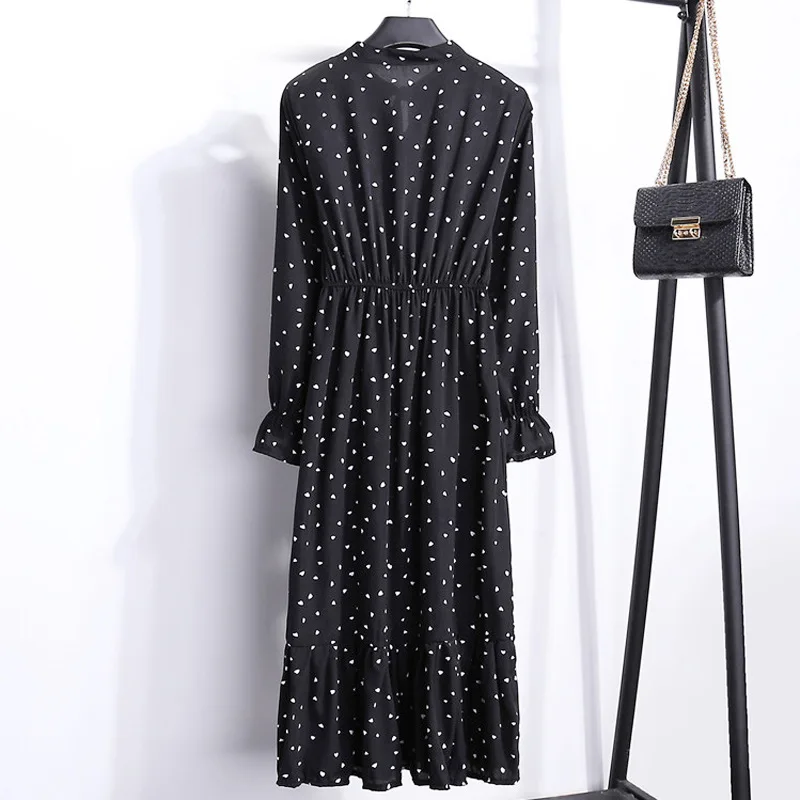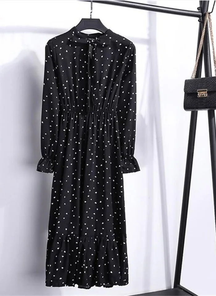 Женское винтажное шифоновое платье-рубашка, Повседневное платье средней длины с длинным рукавом и цветочным принтом в горошек, Осень-зима 2021