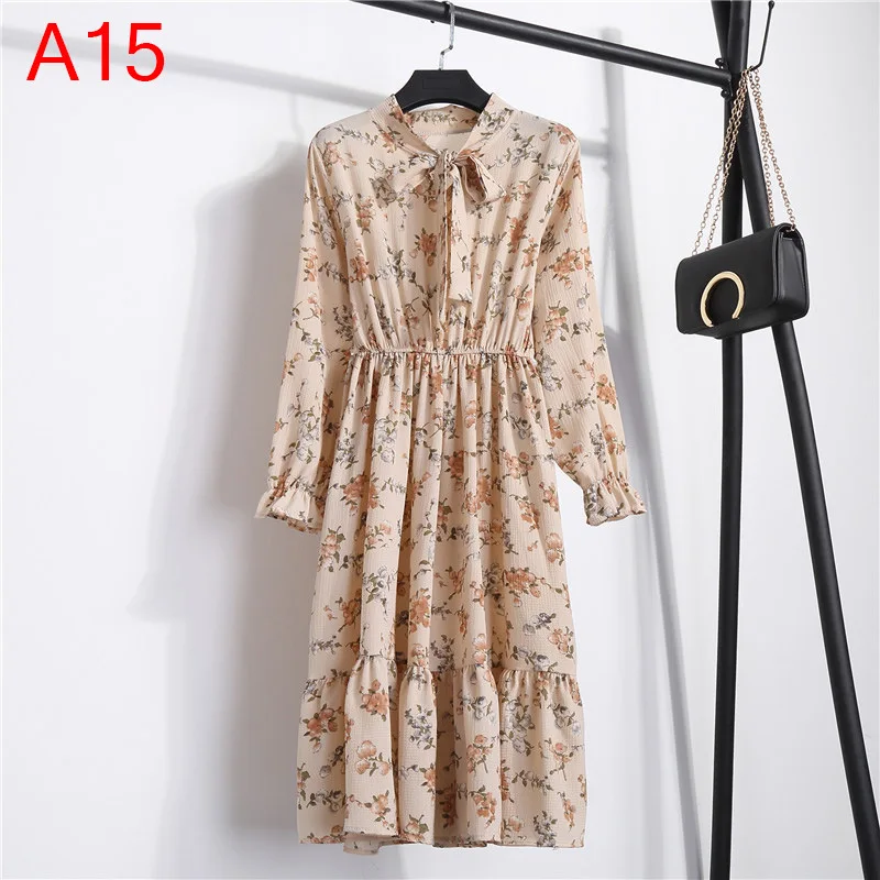 Женское повседневное осеннее платье, женское винтажное шифоновое пл...