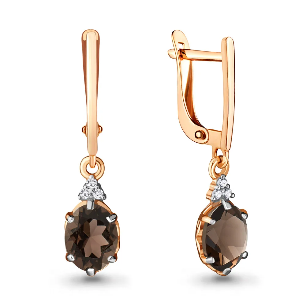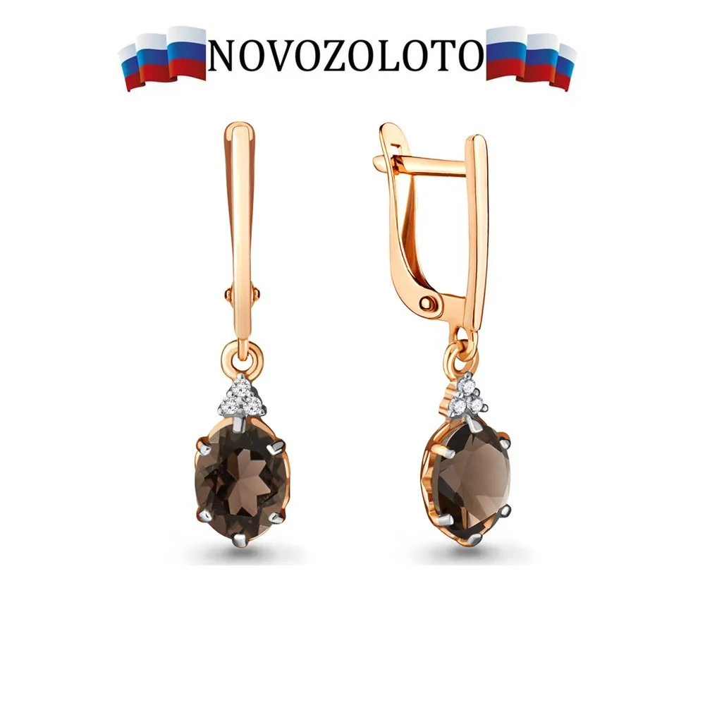 Серьги тренд 2022 NOVOZOLOTO серебро подлинное 925 пробы, раухтопаз, покрытие золото, производство Россия, бирка завода, пломба