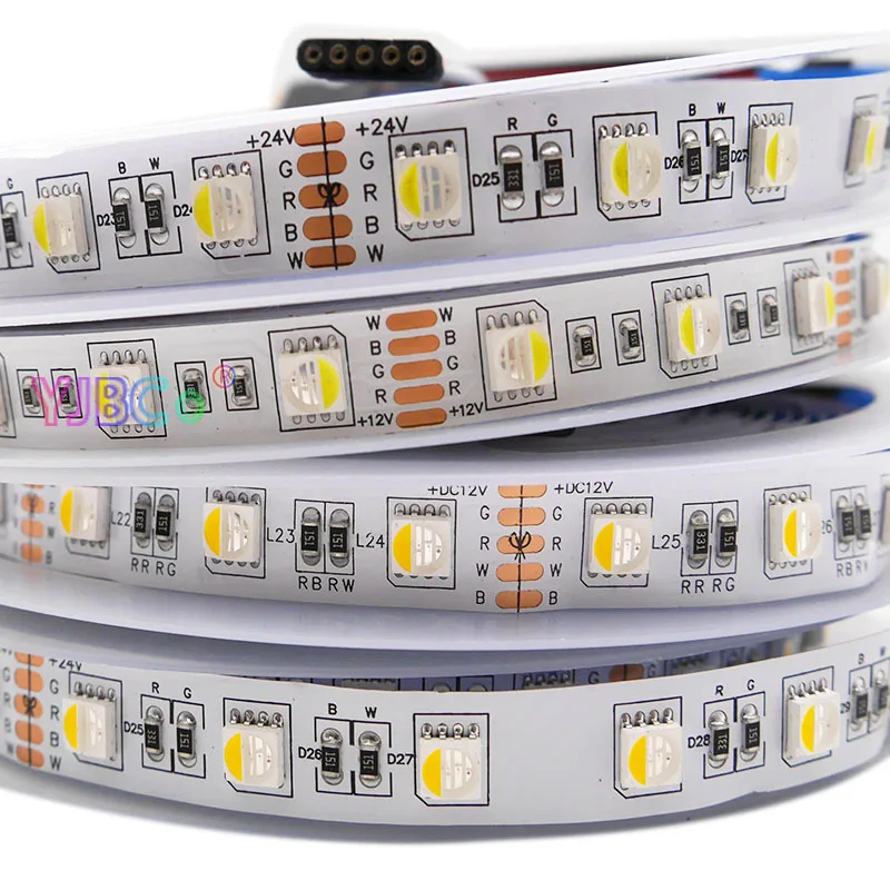 Светодиодная лента 4 в 1, 5 млот, RGBWRGBWW, 12 В постоянного тока, 24 В, SMD 5050, гибкая ламповая лента, 60 светодиодовм, водонепроницаемая IP3065IP67, белая, FPCB