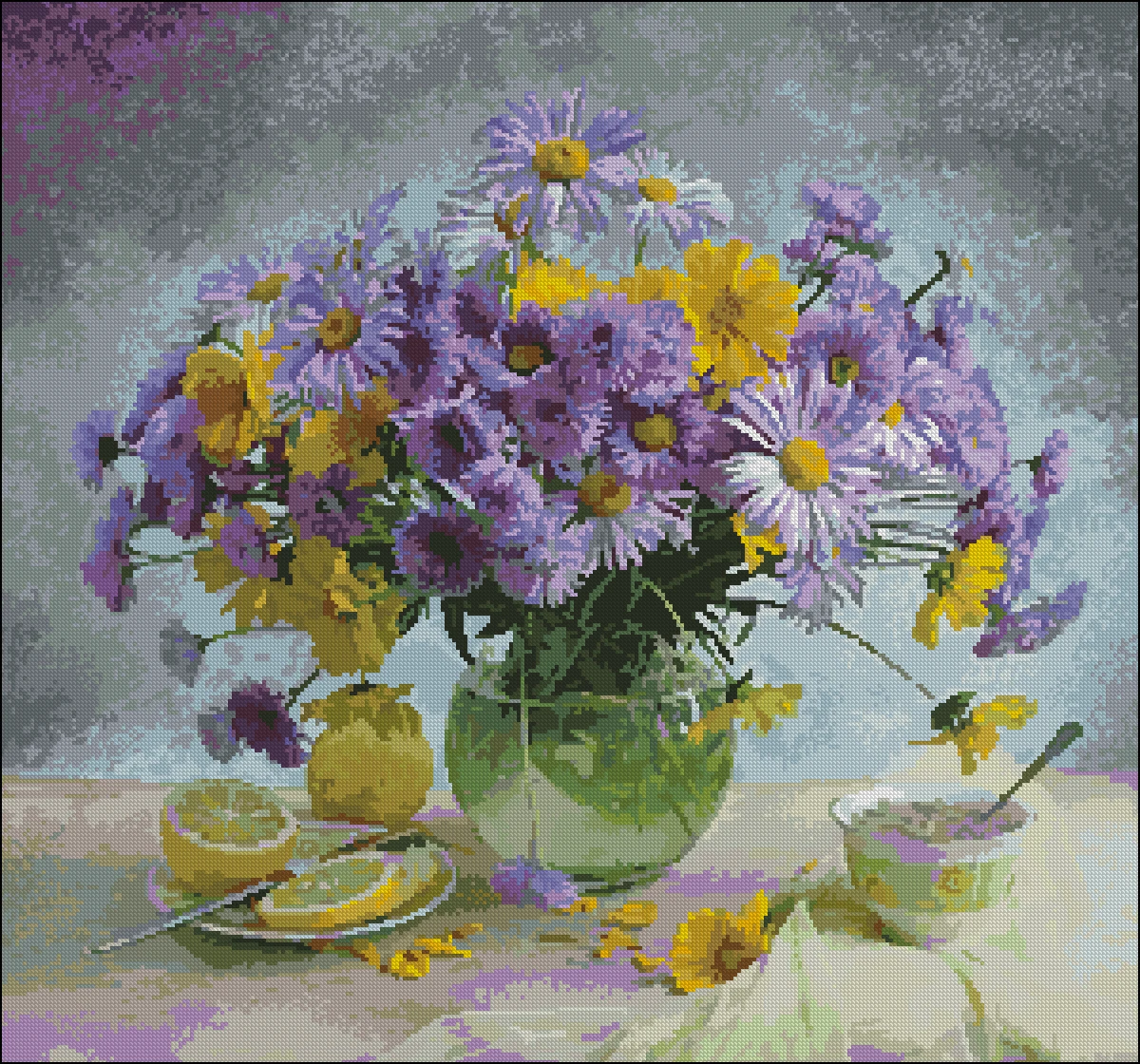 Набор для вышивки крестиком, фиолетовый и желтый цветы, 14CT