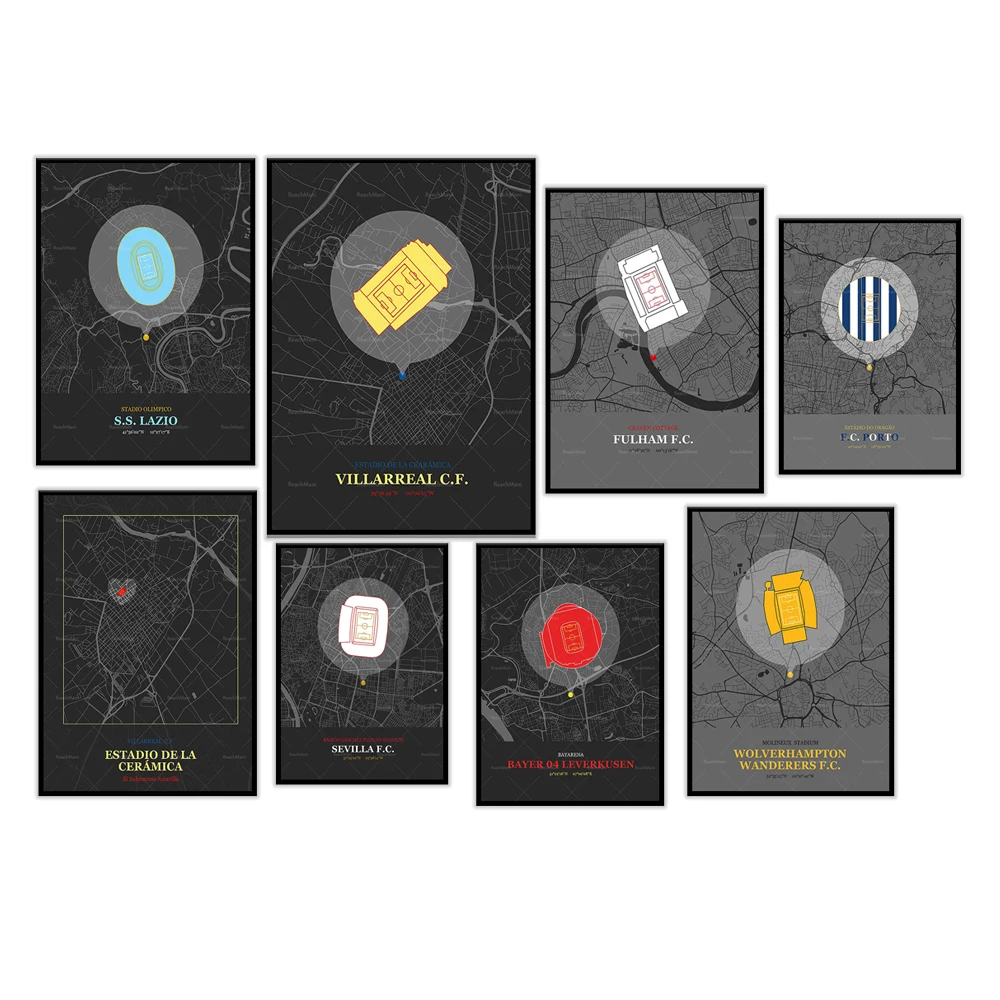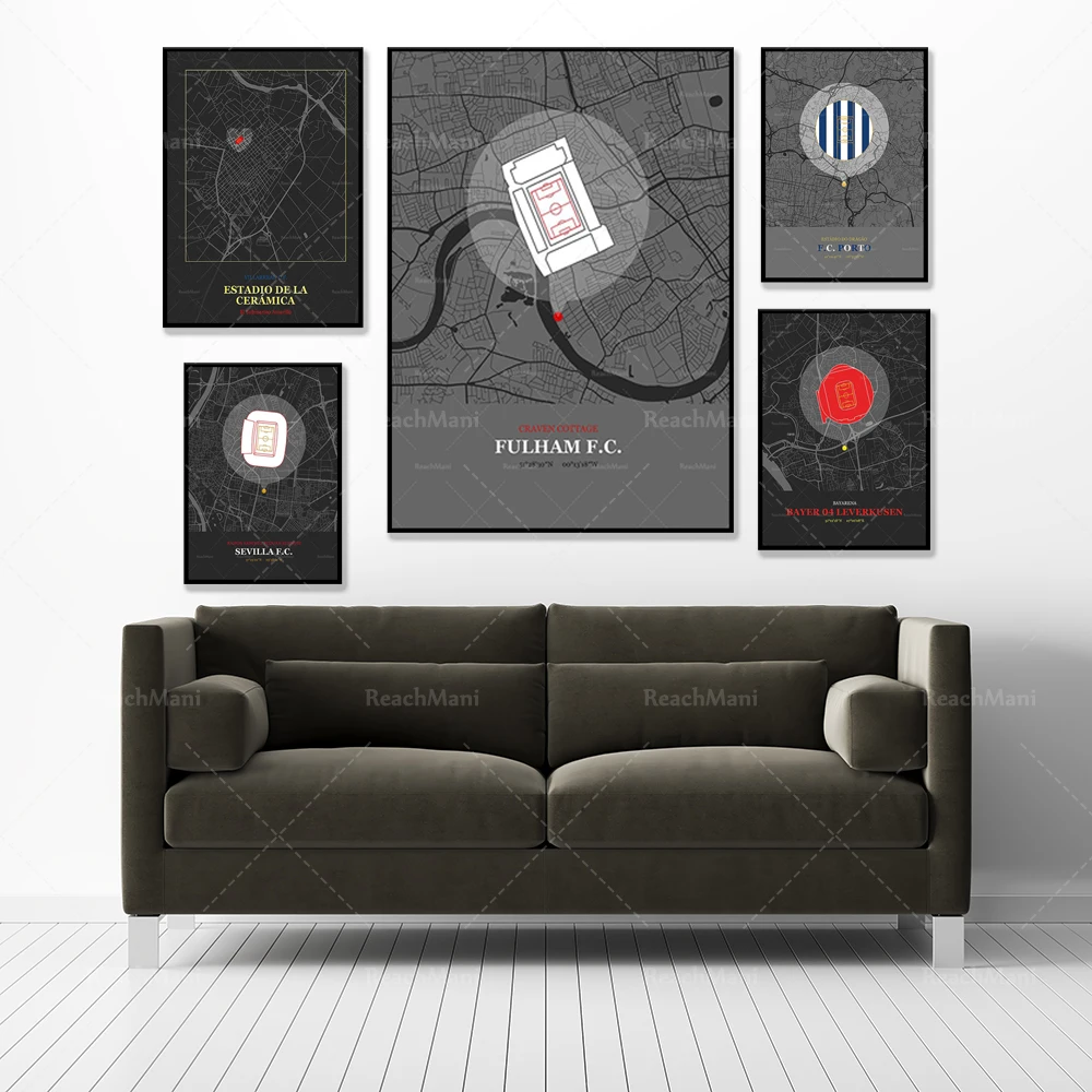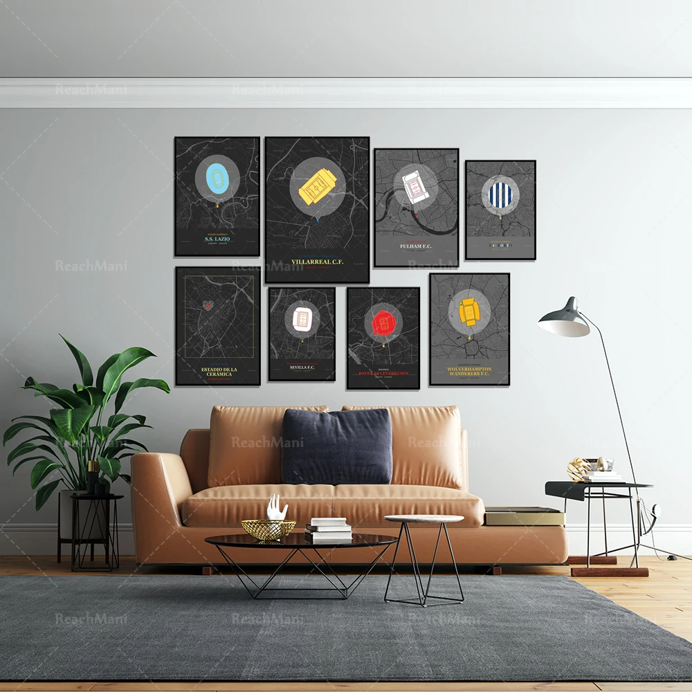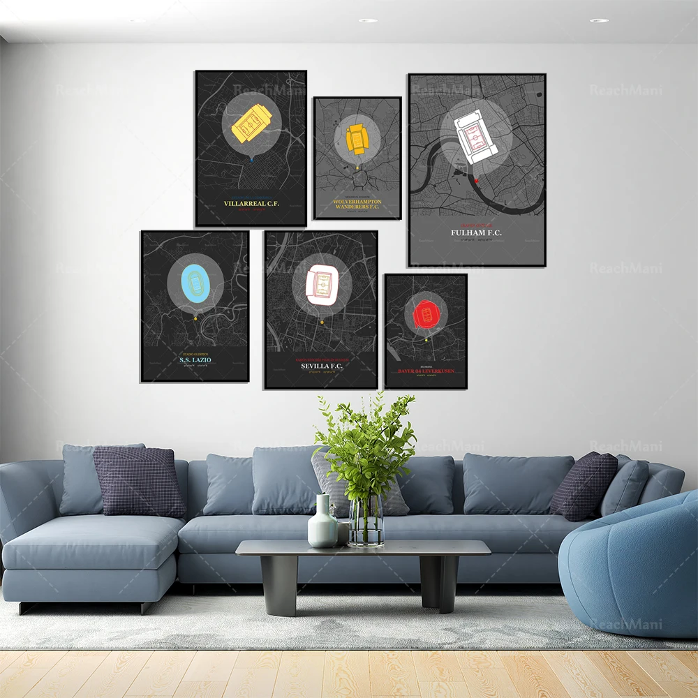Печатная карта стадиона, Рим, Севилья, постеры Villarreal, уличные карты, художественный стадион футбольного стадиона, спортивные подарки для фанатов, поклонников