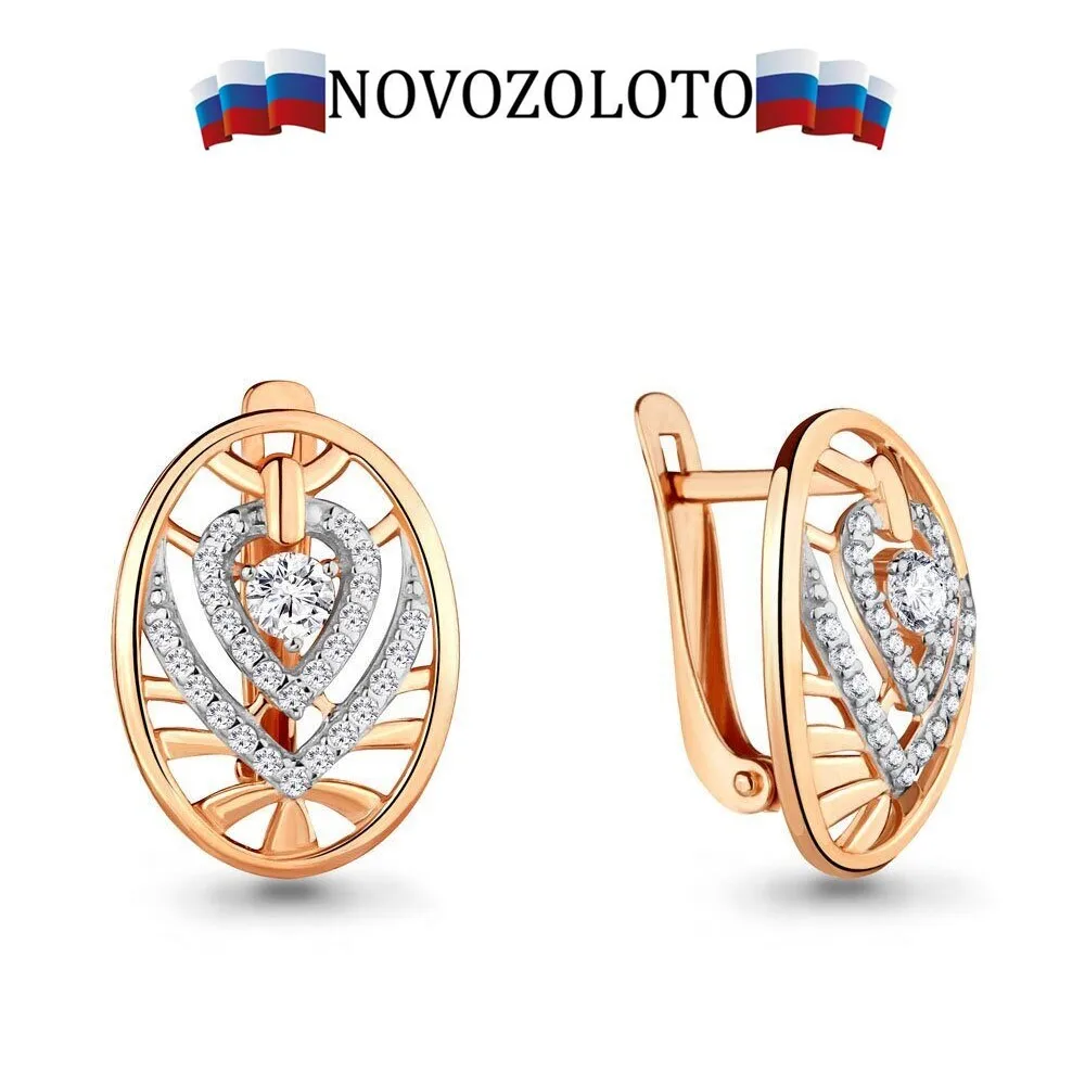 Cерьги тренд 2022 NOVOZOLOTO подлинное серебро 925 пробы, покрытие золото, вставки фианиты производство Россия
