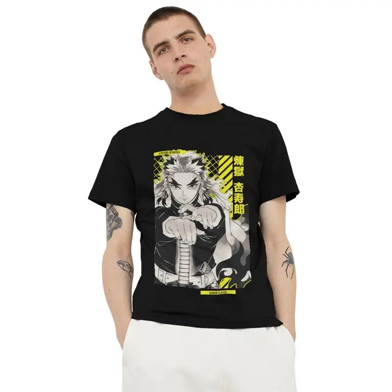Винтажная Футболка Kimetsu No Yaiba с рассекающим демонов, мужские хлопковые футболки, уличная одежда, футболка с коротким рукавом, топы с аниме kyorengoku