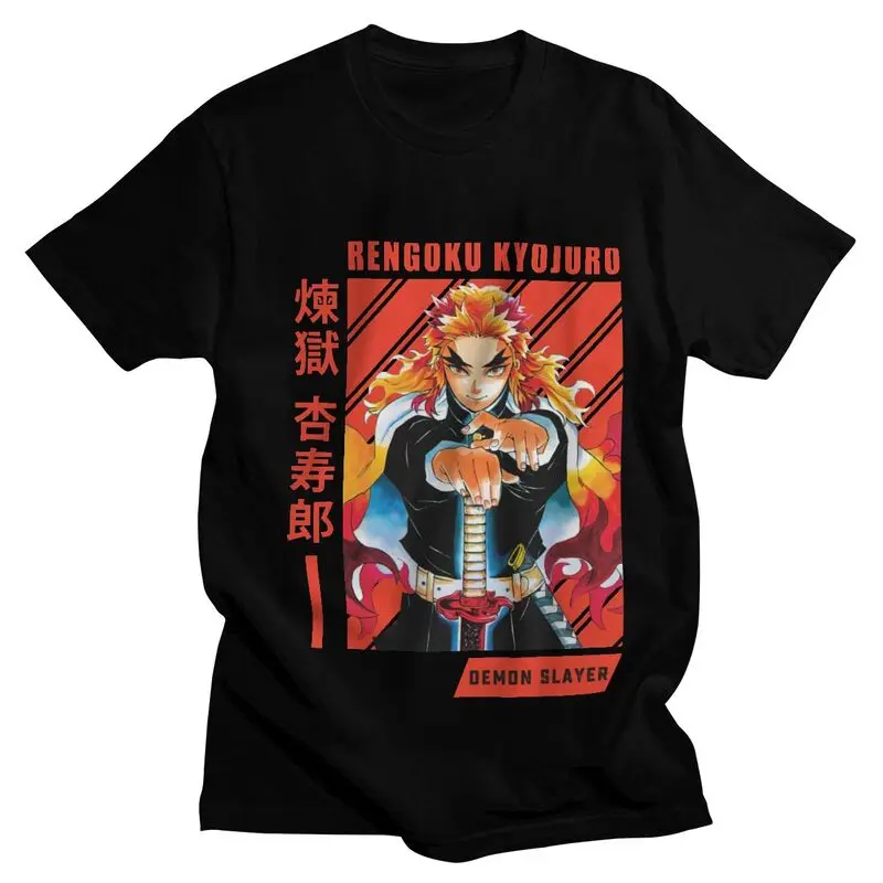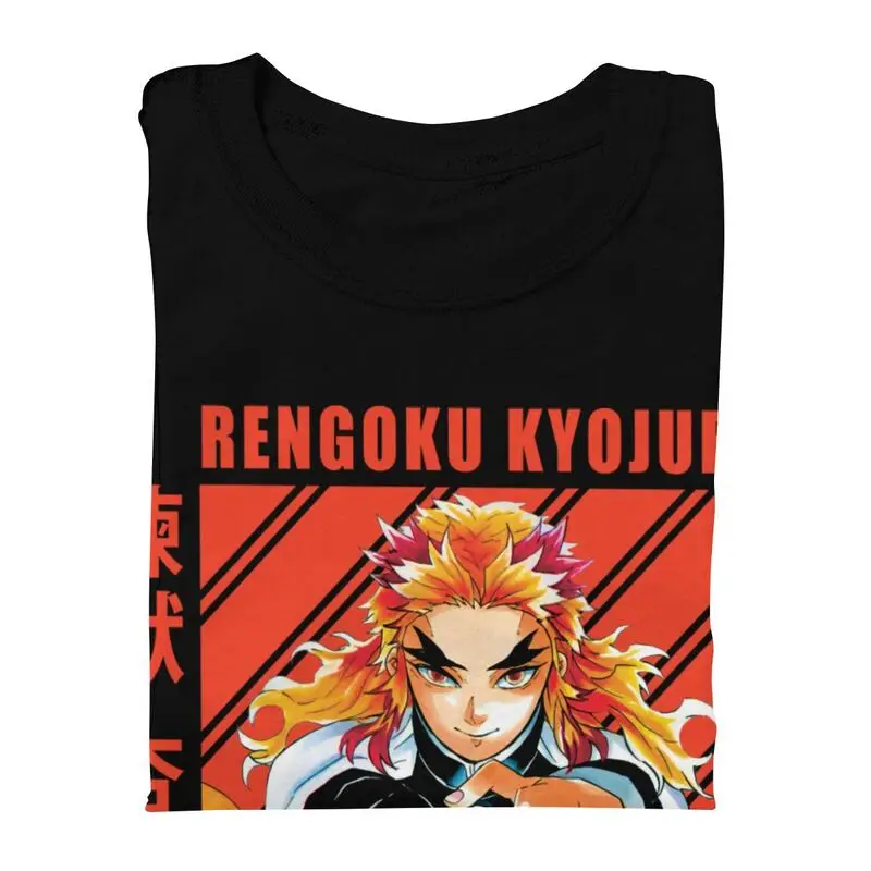 Футболка мужская Винтажная с коротким рукавом, хлопковая тенниска в стиле хип-хоп, с изображением куриума ренгоку, рассекающего демонов, Kimetsu No Yaiba