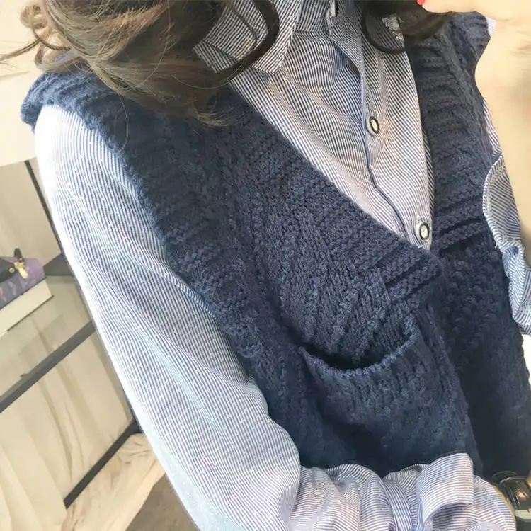 Женский трикотажный однотонный Свободный пуловер с V-образным вырезом, повседневный простой пуловер, топы, женская универсальная верхняя одежда, жилеты, элегантный женский жилет H574, 2021
