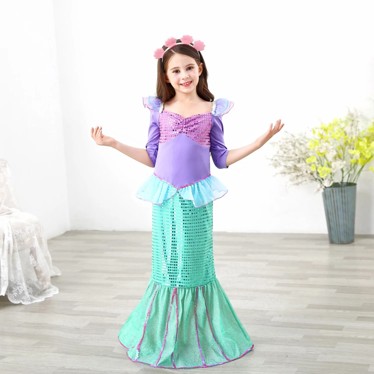 Летнее милое и прекрасное платье принцессы русалки для девочек, мягкое и удобное, Детская модель подиума, маскарада, представления, косплей костюм