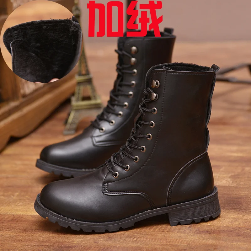 [Быстрый возврат] осенне-зимние Ботинки Martin в Корейском стиле; Большие размеры; Женские полусапожки; Всесезонные тонкие ботинки; Кожаные ботинки для студенток; Теплые ботинки из плюша и хлопка