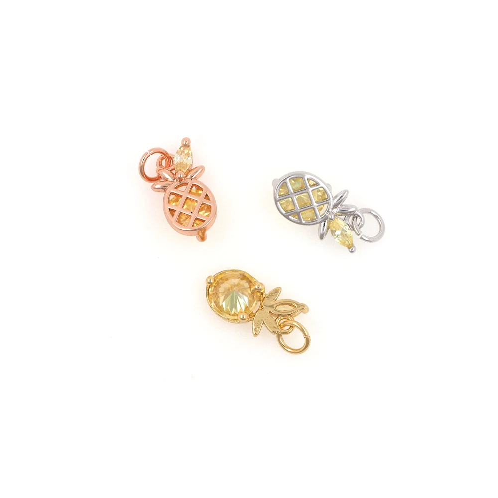 Золотистые кулон с ананасом ювелирные изделия, Micropav кубический цирконий фруктовое ожерелье, кулон с ананасом, DIY ювелирные детали 13,2 6 3,7 мм