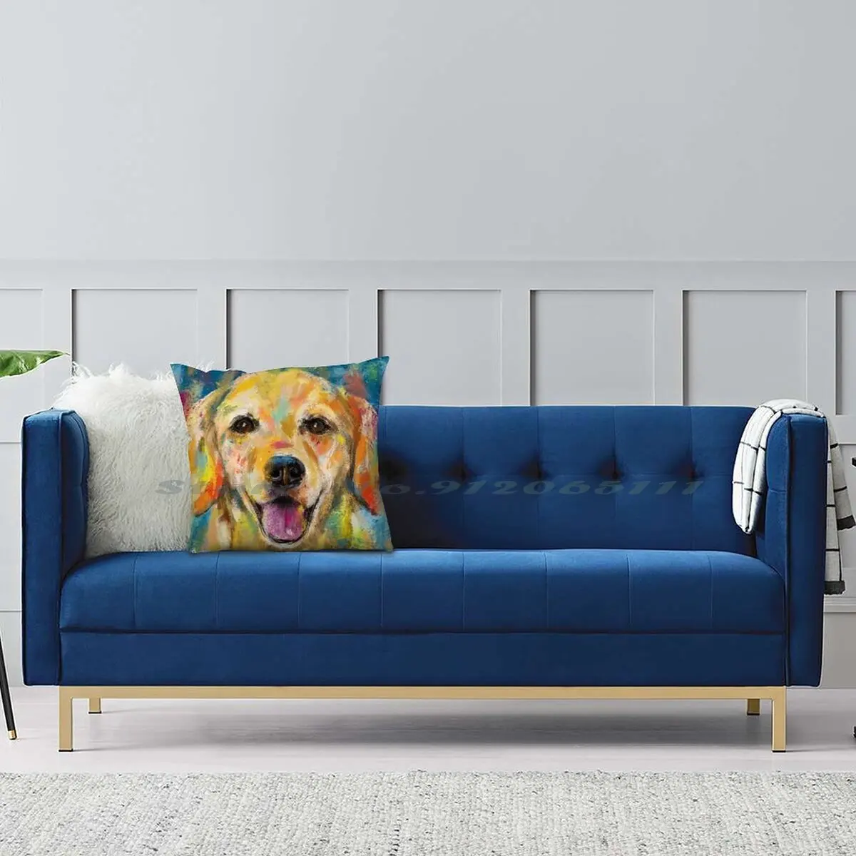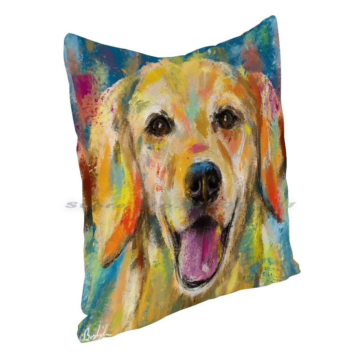 Художественный и красочный чехол с изображением золотистого ретривера и улыбающейся подушки наволочка из хлопка и льна золотой ретривер